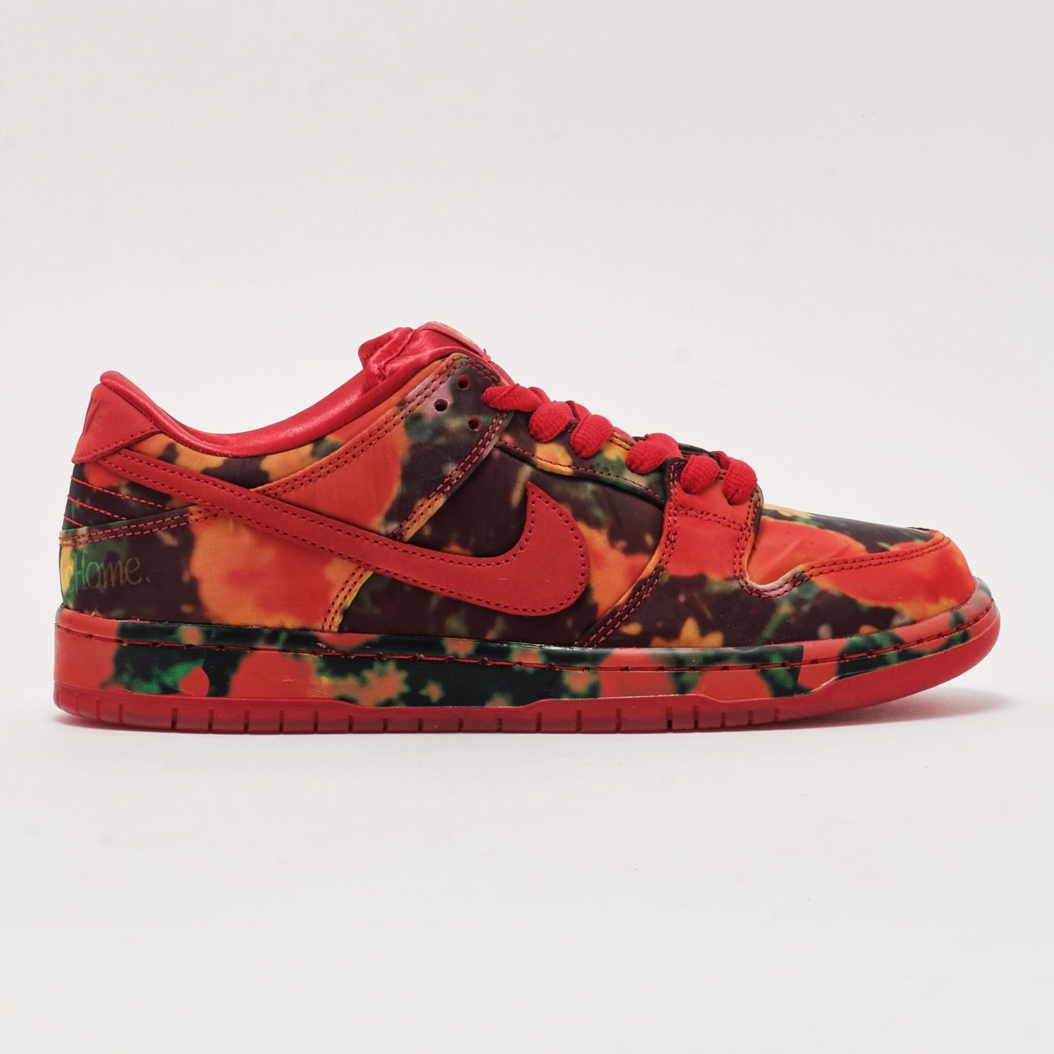 True to Nike SB’s legacy, the Poppy Field Dunk Low blends nostalgic details with contemporary craftsmanship. The heel features Dorothy’s legendary line, "There’s no place like home," embroidered in bold lettering. A second hidden layer of red leather peeks through the upper for added depth, while custom insoles include an image of the Wicked Witch of the West, making these sneakers a collector’s dream. Satin finishes, a lush red outsole, and the iconic "Wizard of Oz" text on the tongue complete the story-driven design.