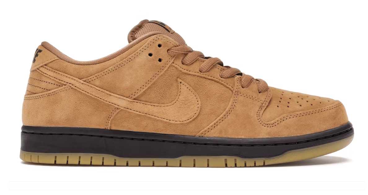 The Nike SB Dunk Low Wheat (2021/2023) comes in a Wheat and Wheat-Baroque Brown-Gum color scheme.