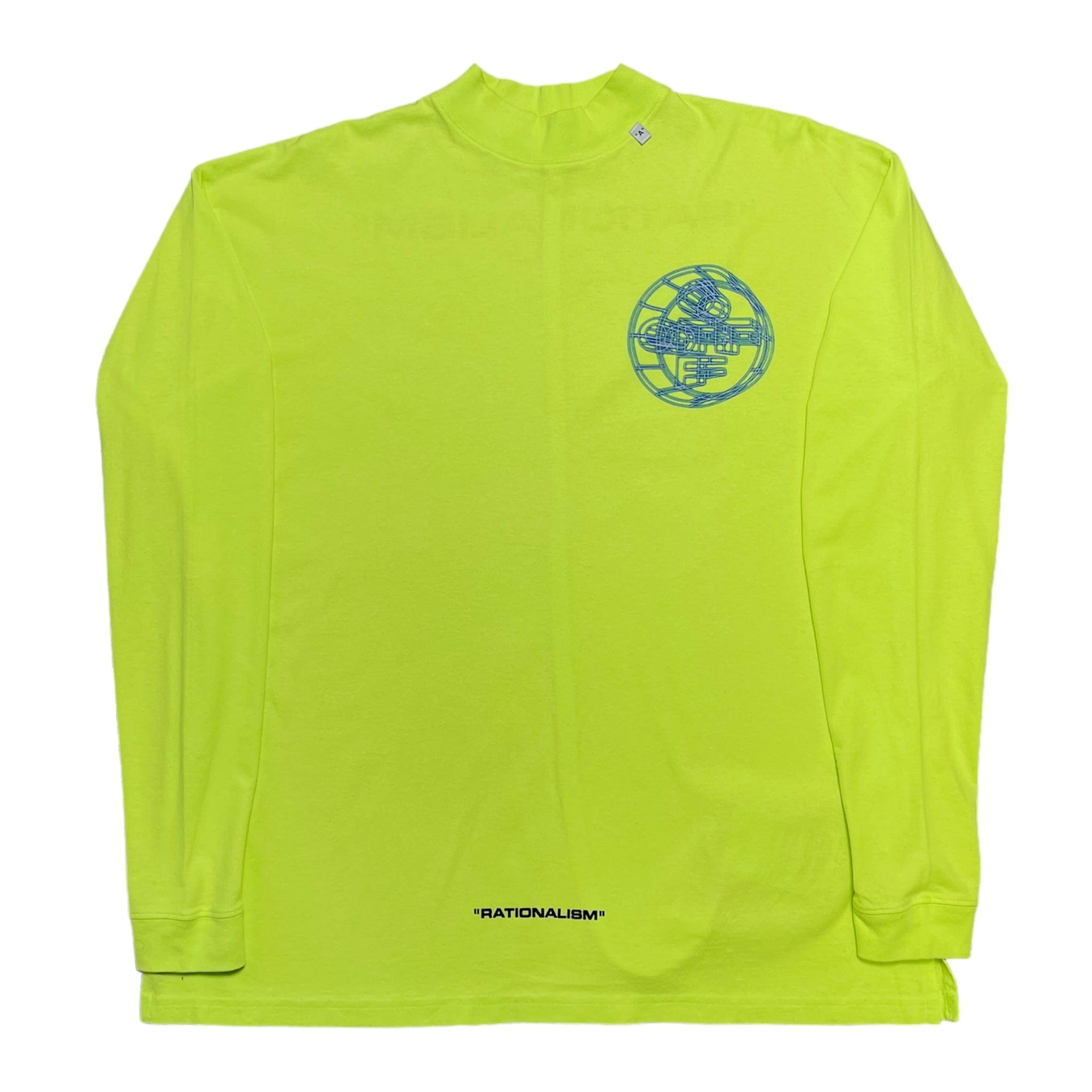 Off-White c/o Virgil Abloh is a fashion label rooted in current culture at a taste-level particular to now. Manufacturing is based in Milan with a core value of the brand to be made from the best available and particular opinion regarding fabric, fit and fabrication. Pictured is the Off-White c/o Virgil Abloh 3D Crossed Off Over Mock Neck in Fluorescent Yellow.