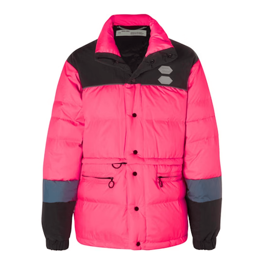 Off White Detachable Sleeve Padded Down Jacket Fuschia