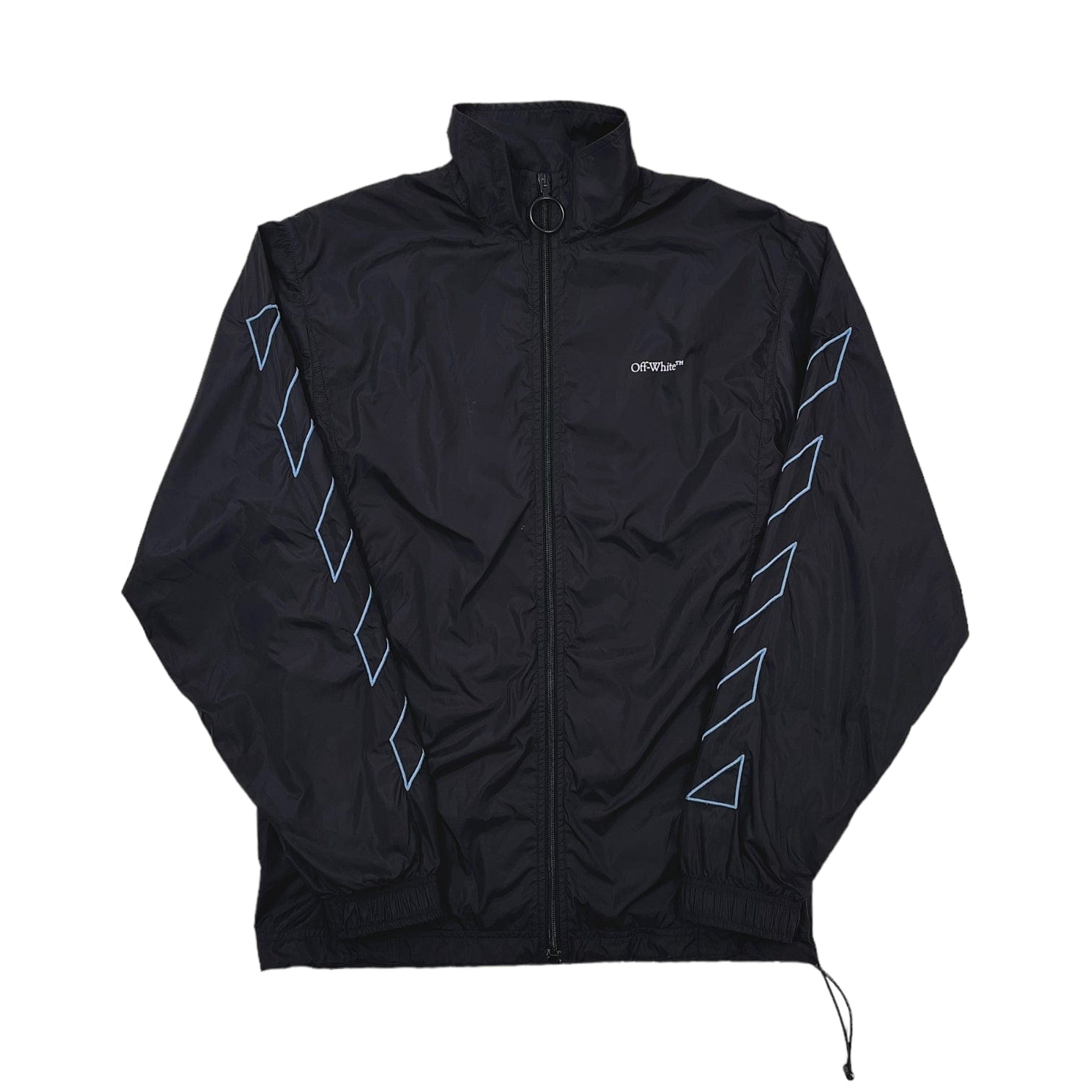 Origins NYC offers this new Off-White Diag Nylon Full Zip Jacket in Black/Blue.