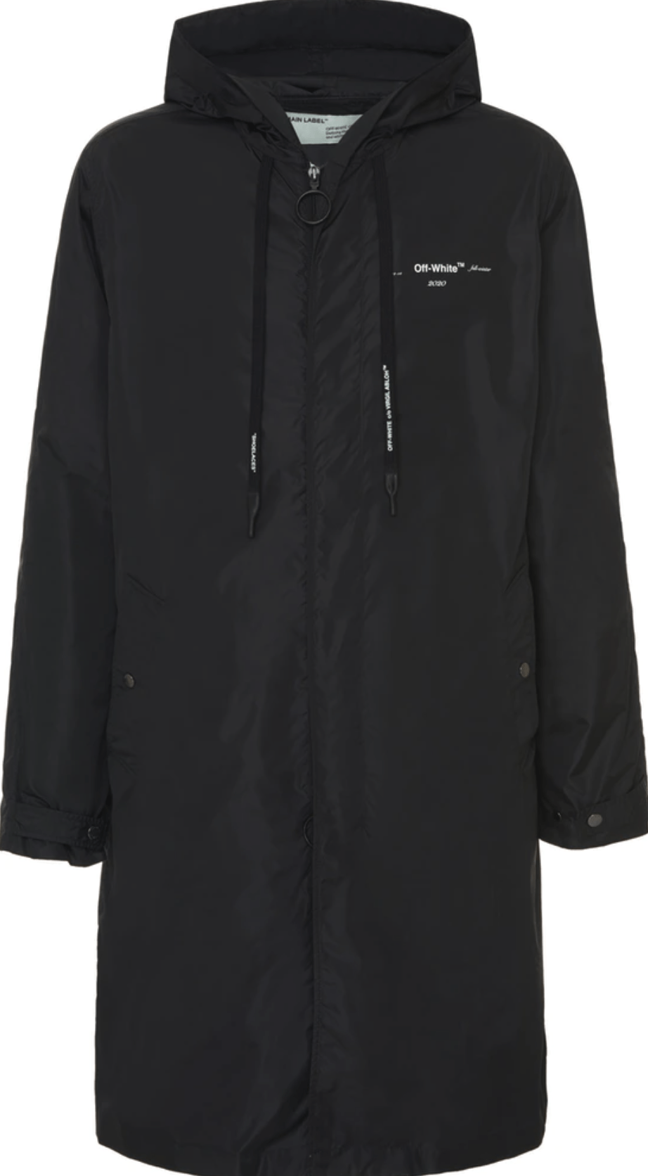 Origins NYC offers this new OFF-WHITE Unfinished Raincoat in Black.