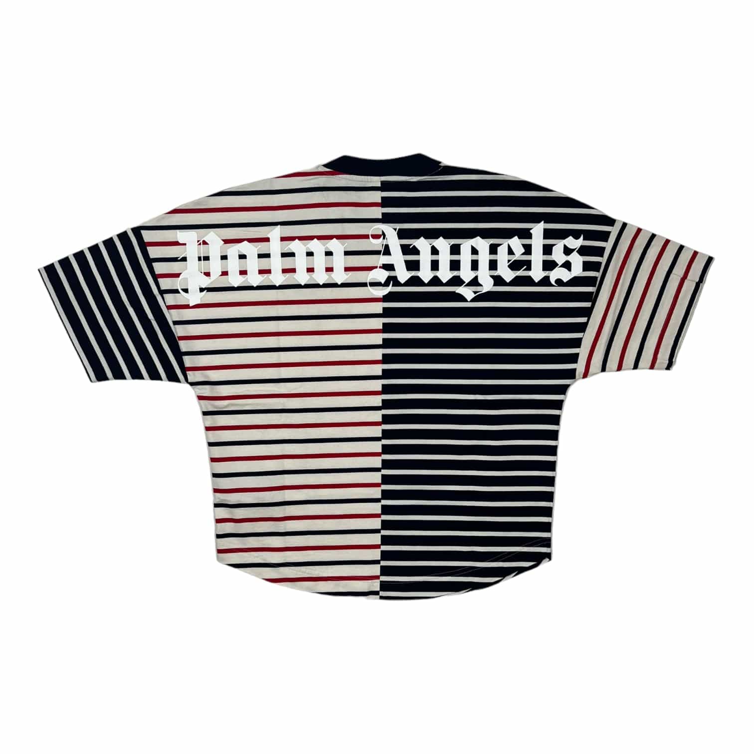Palm Angels Striped Shoulder Logo Short Sleeve Tee Shirt White Blue Multi