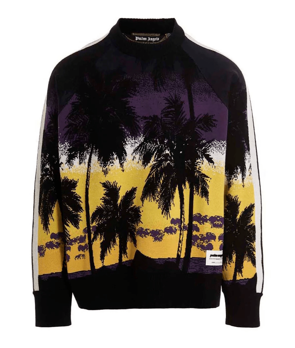 Palm Angels Sunset Intarsia Crewneck Sweater Yellow Purple
