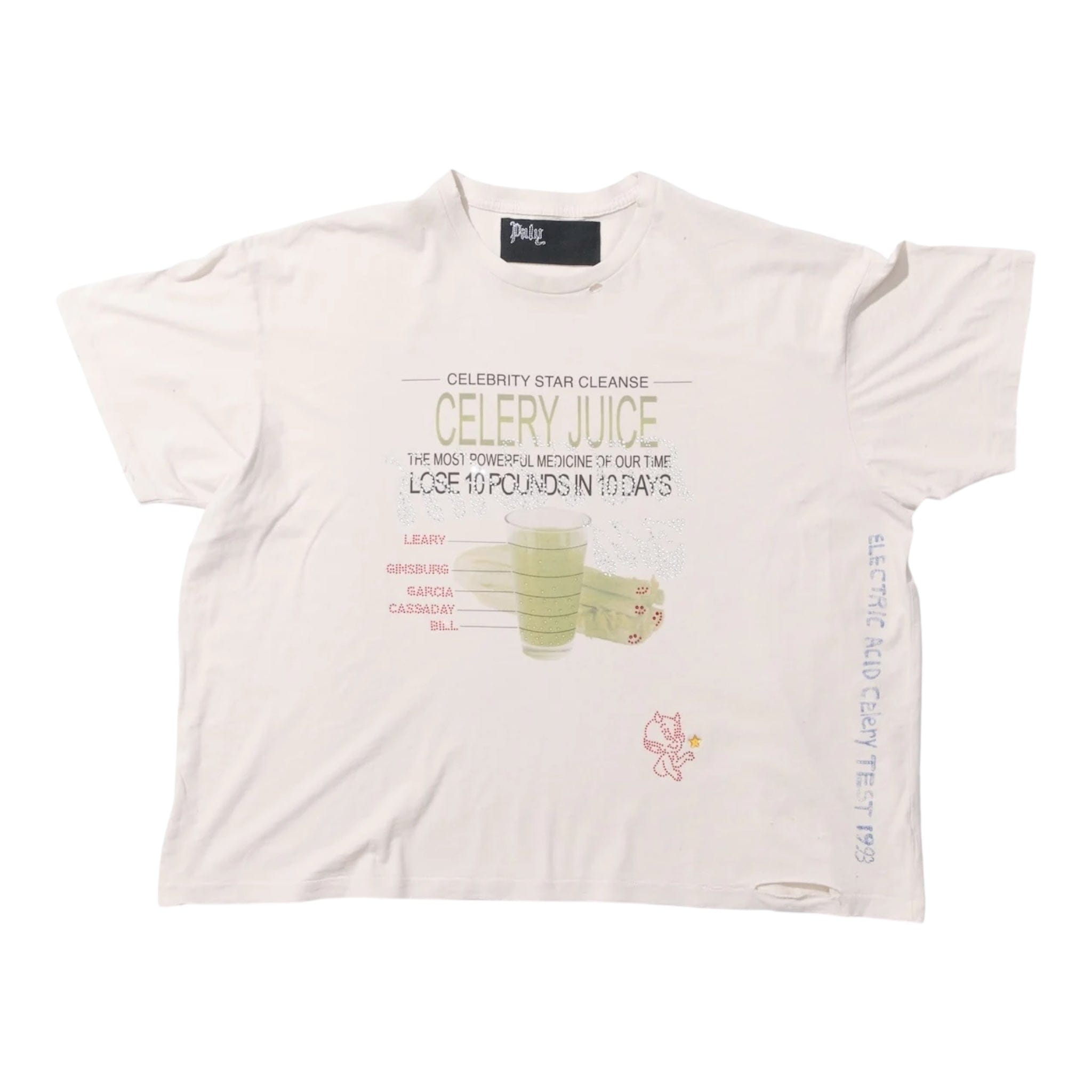 Paly Hollywood Celery Cleanse Short Sleeve Tee Shirt Vintage White Multi