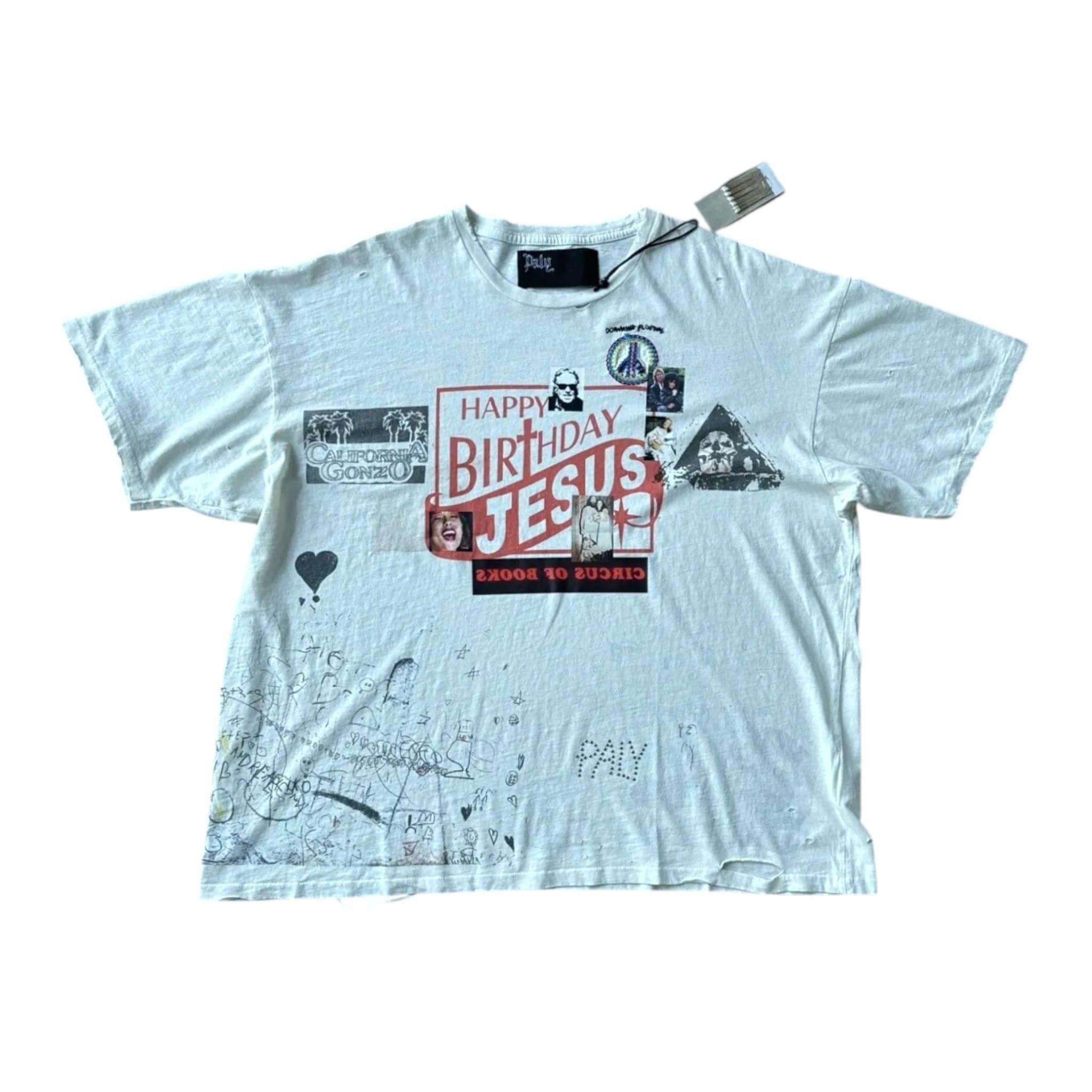Paly Hollywood Happy Birthday Jesus Short Sleeve Tee Shirt White Multi