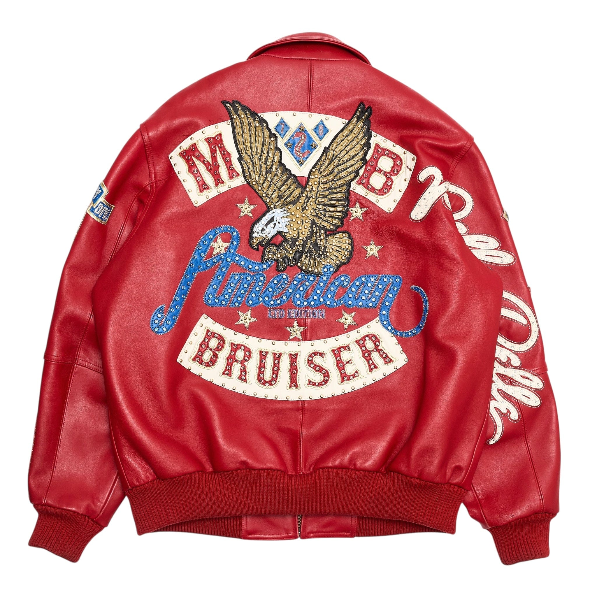 Pelle Pelle American Bruiser Studded Logo Leather Jacket Red White Multi