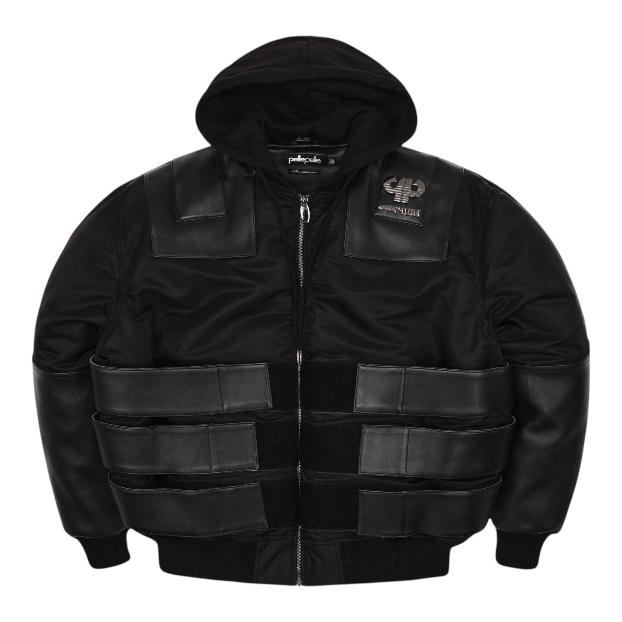 Pelle Pelle x Opium K9 Dogbiter Hooded Leather Bomber Jacket Black Silver