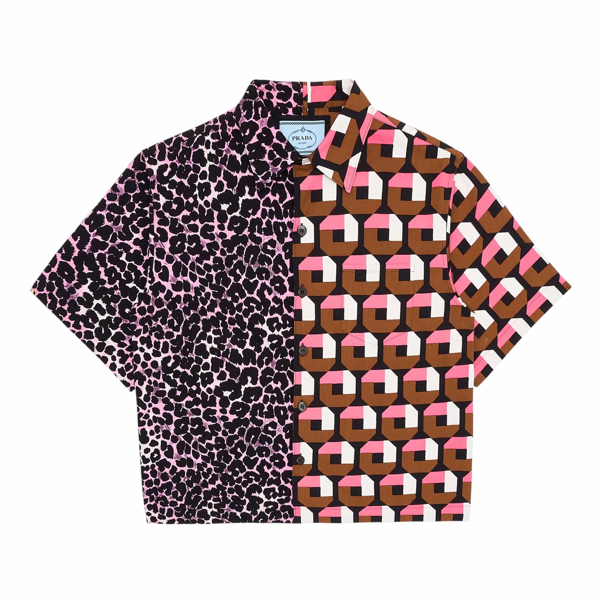 Prada Cheetah Double Match Bowling Button Up Shirt Pink Black Multi
