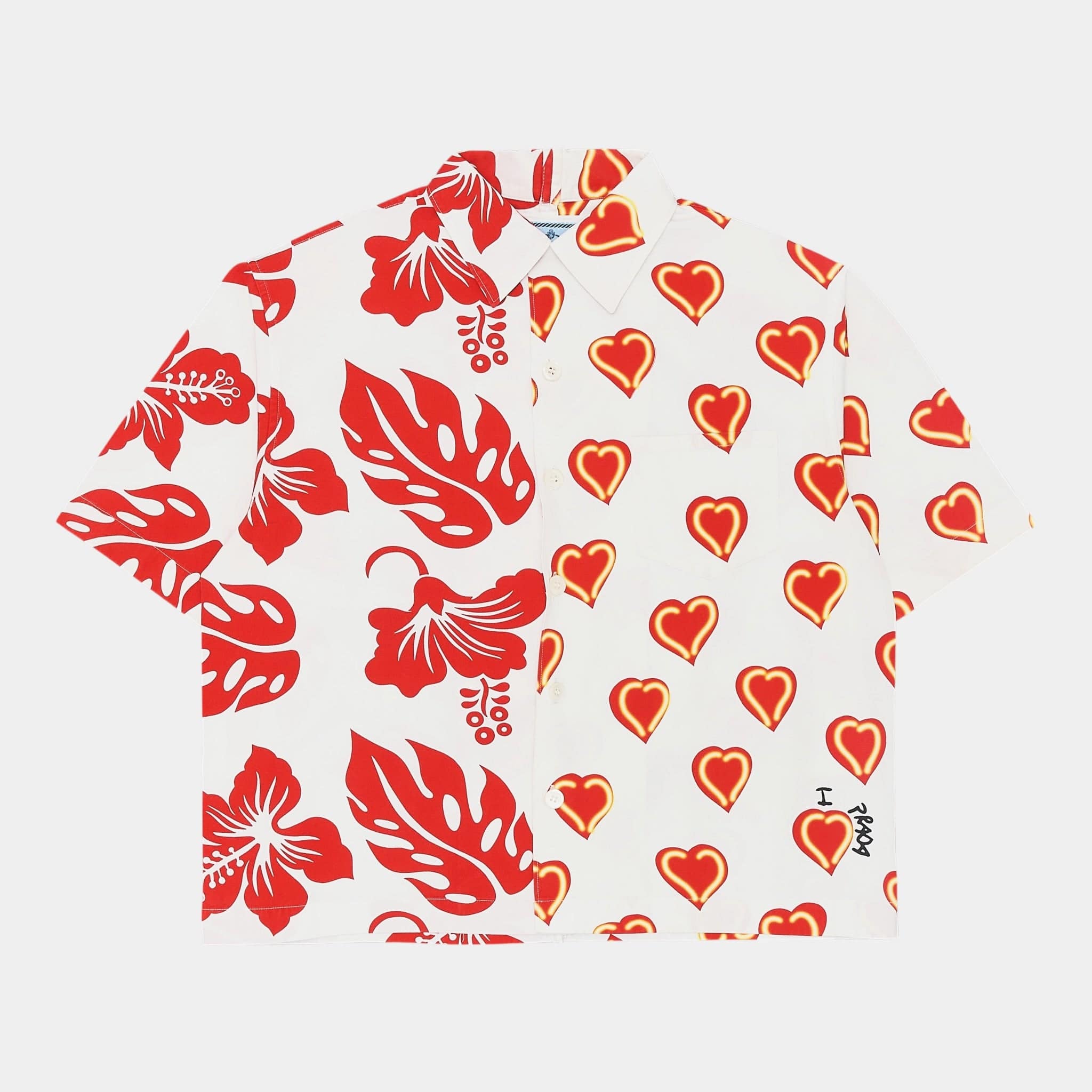 Prada Double Match Hearts Flowers Logo Button Up Shirt White Red Yellow