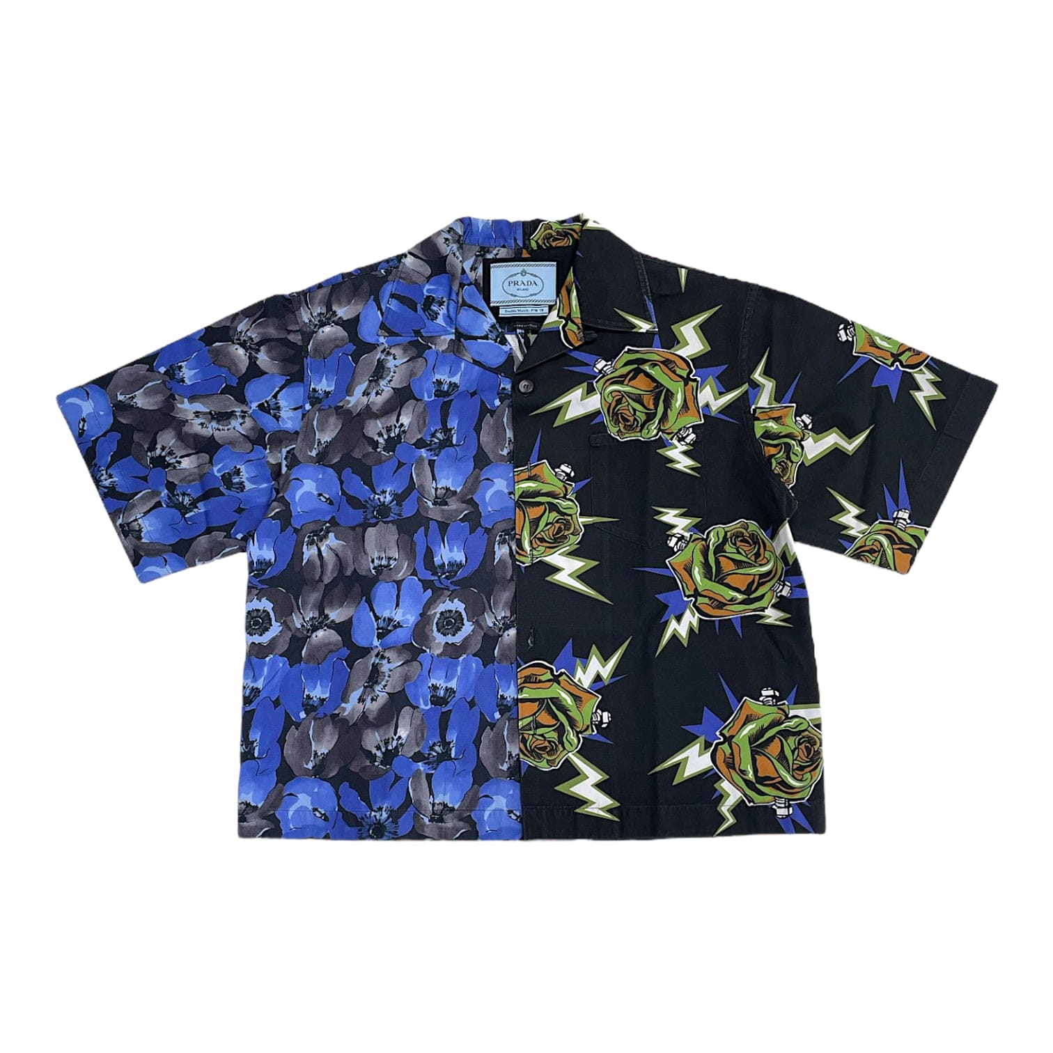 Prada Frankenstein Double Match Bowling Short Sleeve Button Up Shirt Green