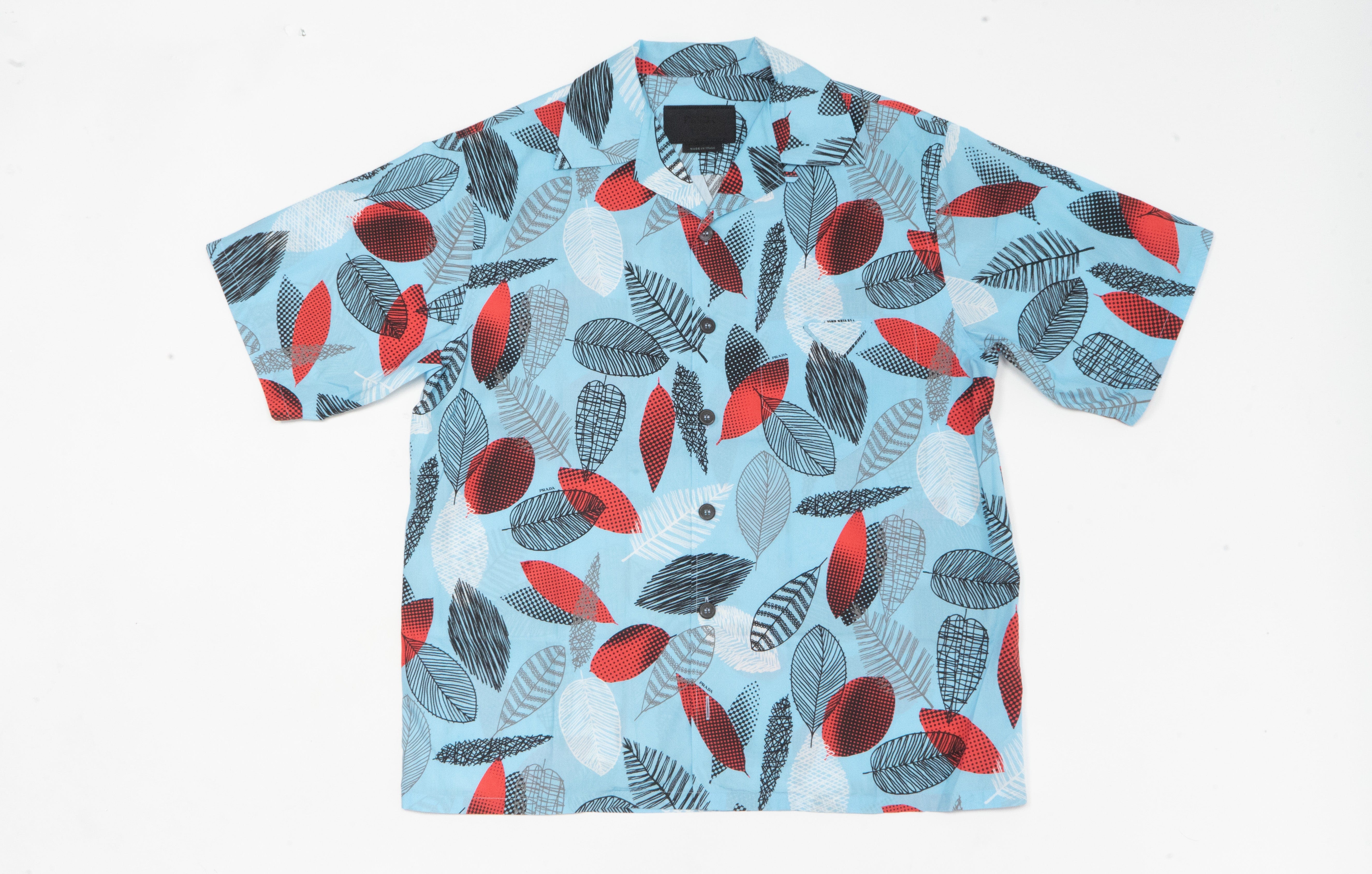 Prada Leaves Print Button Up Shirt Blue Multi Pre-Owned
