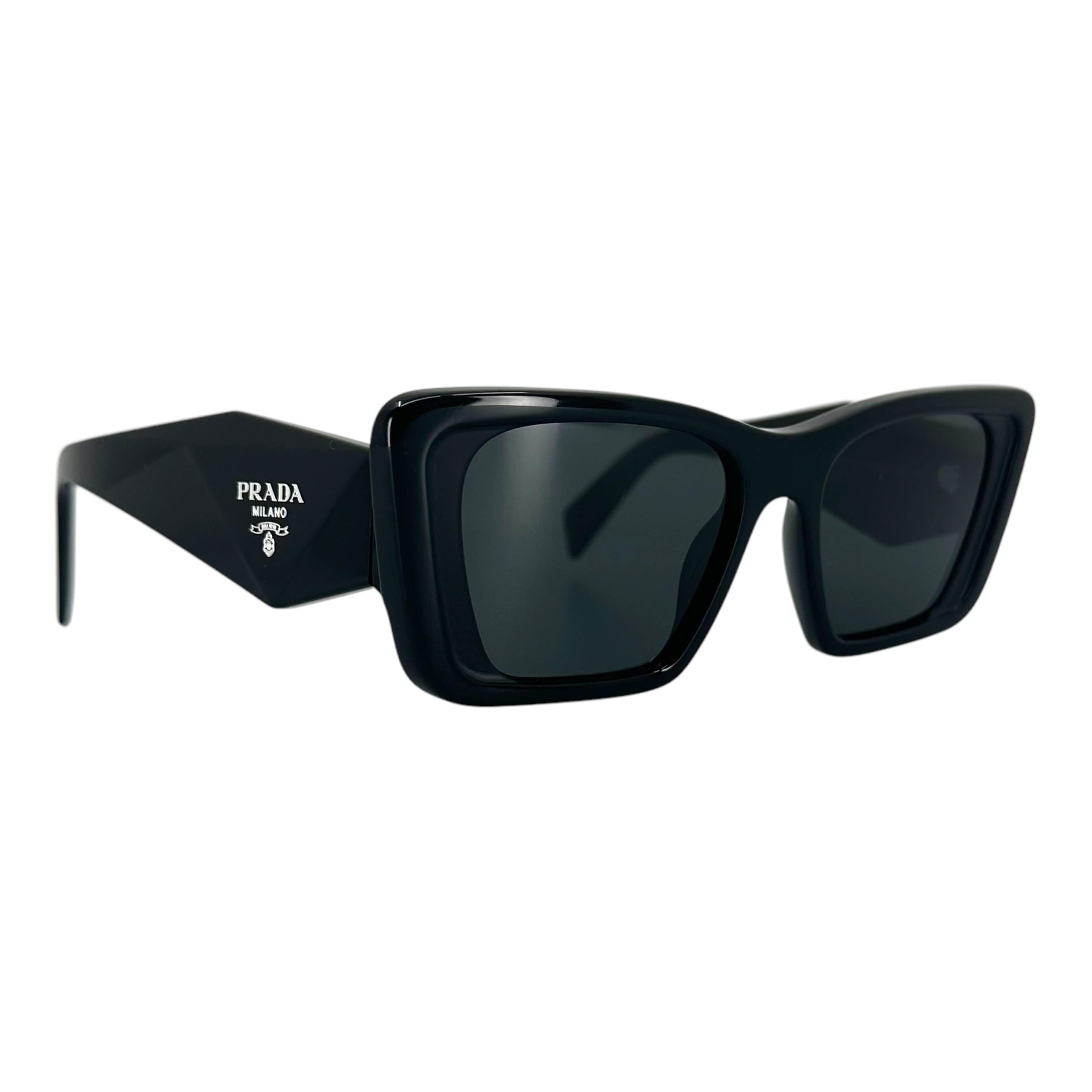 Acetate sunglasses from the Prada Symbole collection. The rectangular shape highlights the avant-garde frame front rims thanks to an exclusive combination of acetate layers. The three-dimensional workmanship on the temples features an iconographic interpretation of the traditional Prada triangle logo.