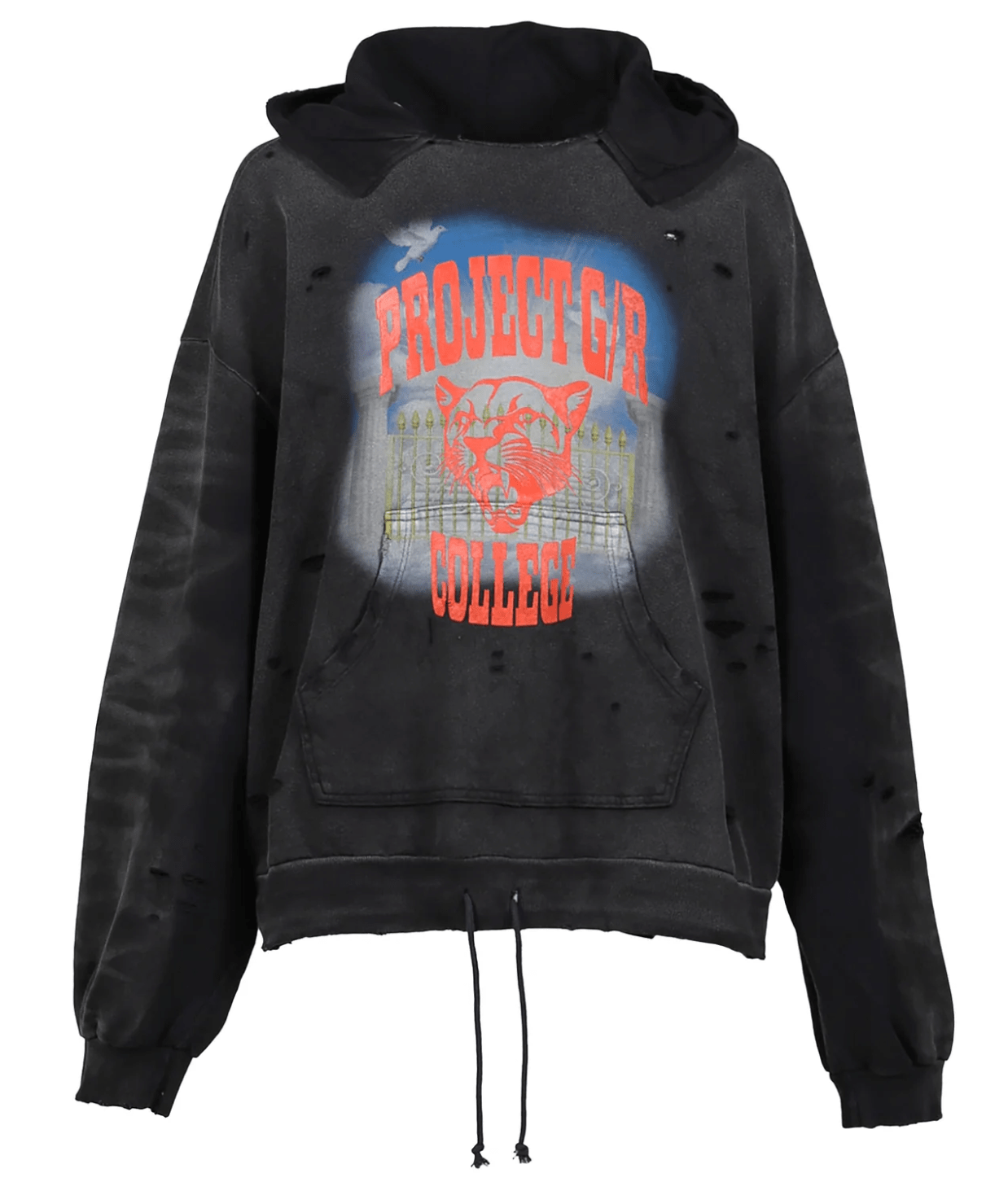 Project G/R College Mix Printed Vintage Hooded Sweatshirt Black