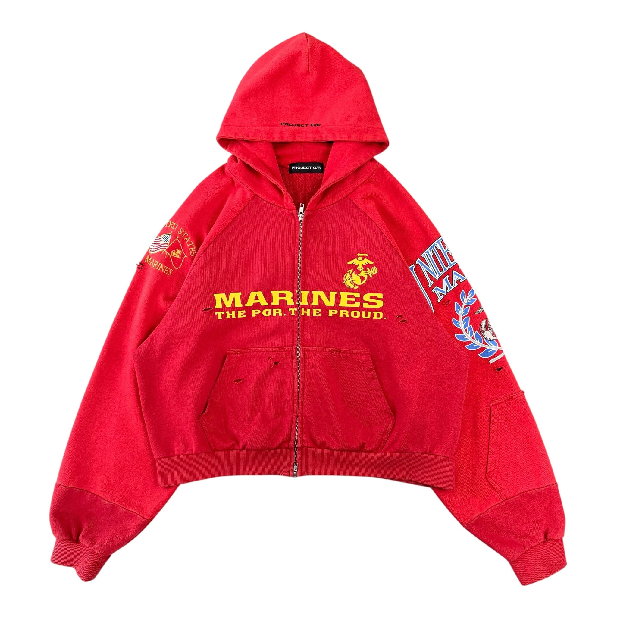 Project G/R Marines Reconstructed Zip Up Hooded Sweatshirt Red