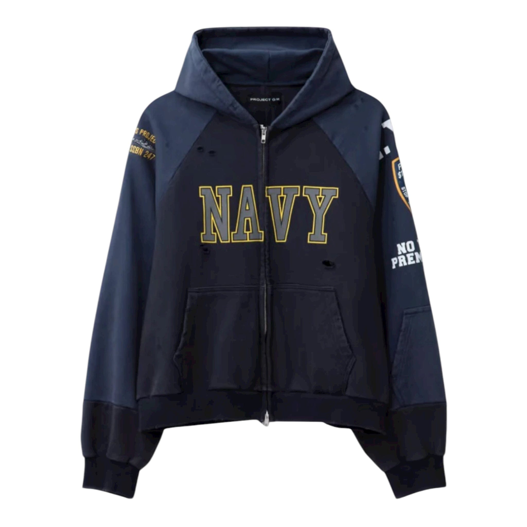 Project G/R Navy Reconstructed Folded Zip Up Hooded Sweatshirt Navy Multi