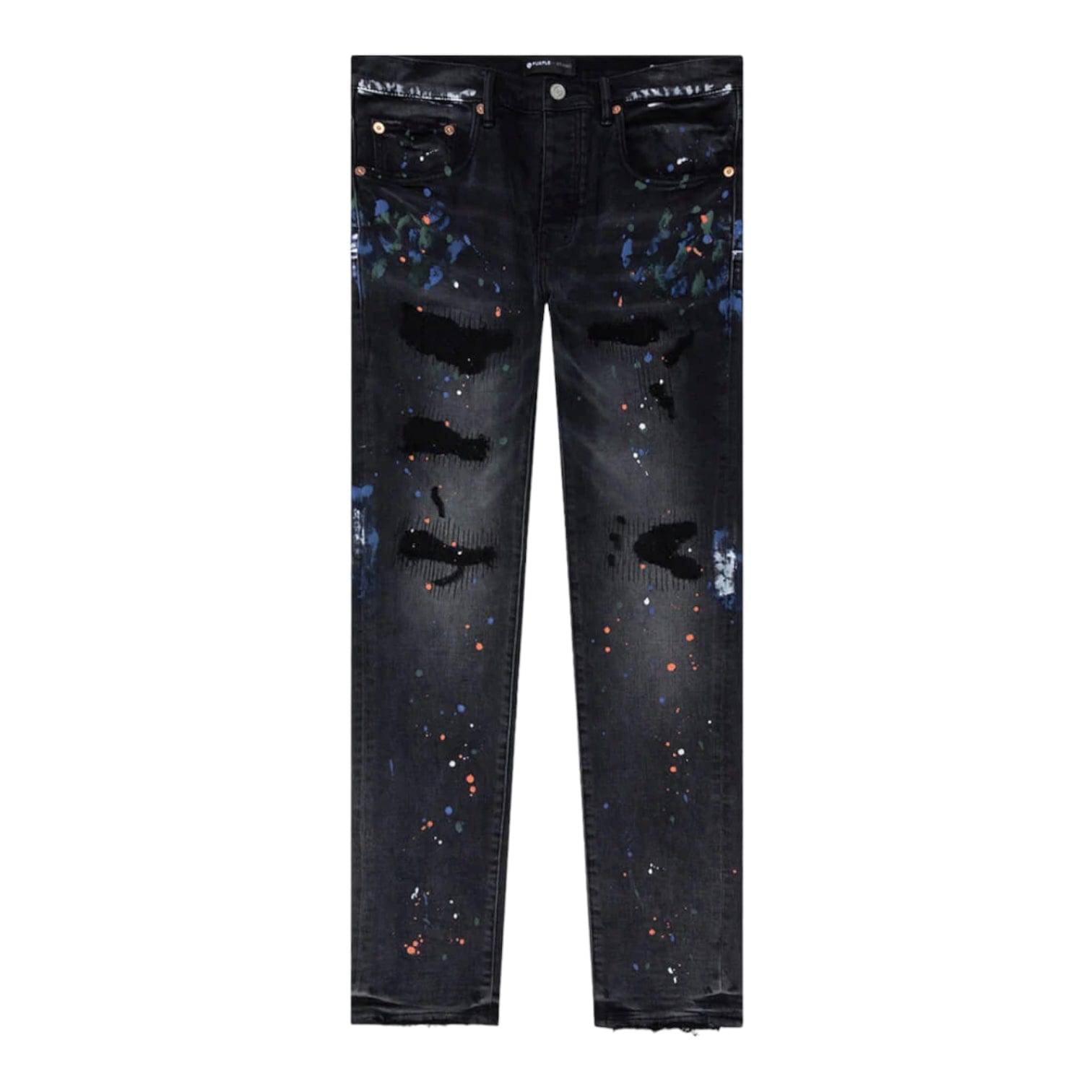 The Purple Denim P001 features a washed-down effect featuring hand-applied distressing, repairs, and paint splattering details throughout the silhouette. Abrasions are also featured at the pockets and hem, which are done by hand. Crafted from a blend of cotton, the jeans include reinforced belt loops and front and back pockets for enhanced durability.
