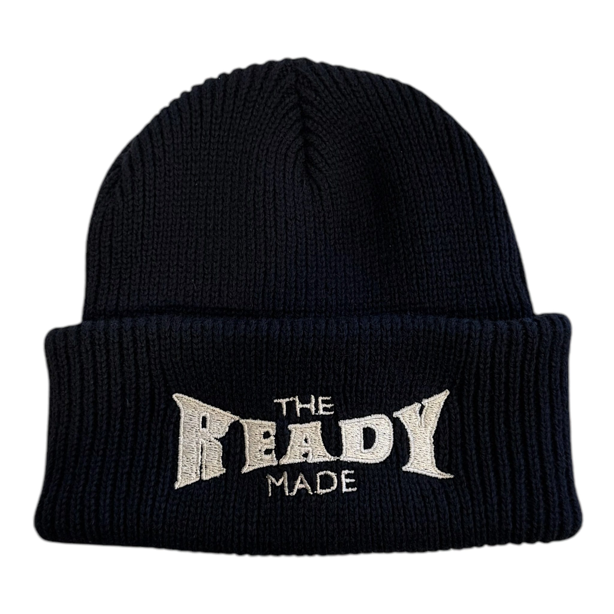 Readymade Embroidered Logo Recycled Wool Knit Beanie Black White