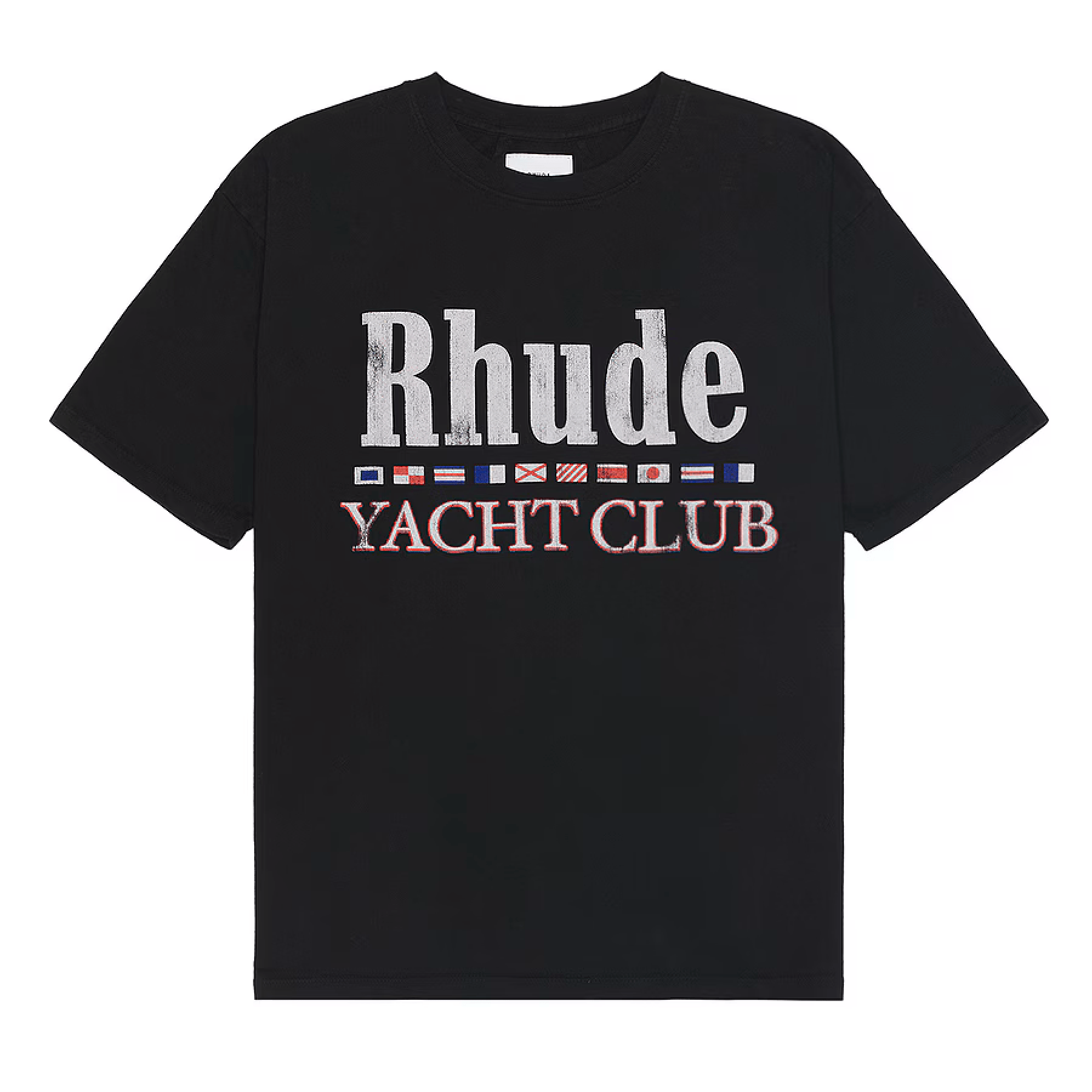 This T-shirt from RHUDE nods to luxurious vacation activities. It is decorated with an eye-catching graphic that refers to Yacht Club, a type of sports club with social membership.