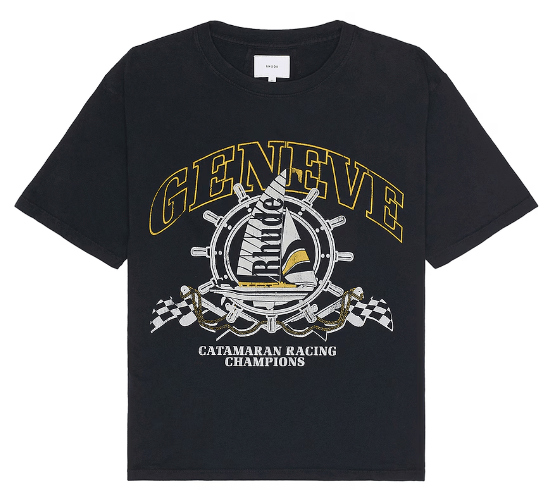 Rhude Geneve Catamaran Short Sleeve Tee Shirt Vintage Black