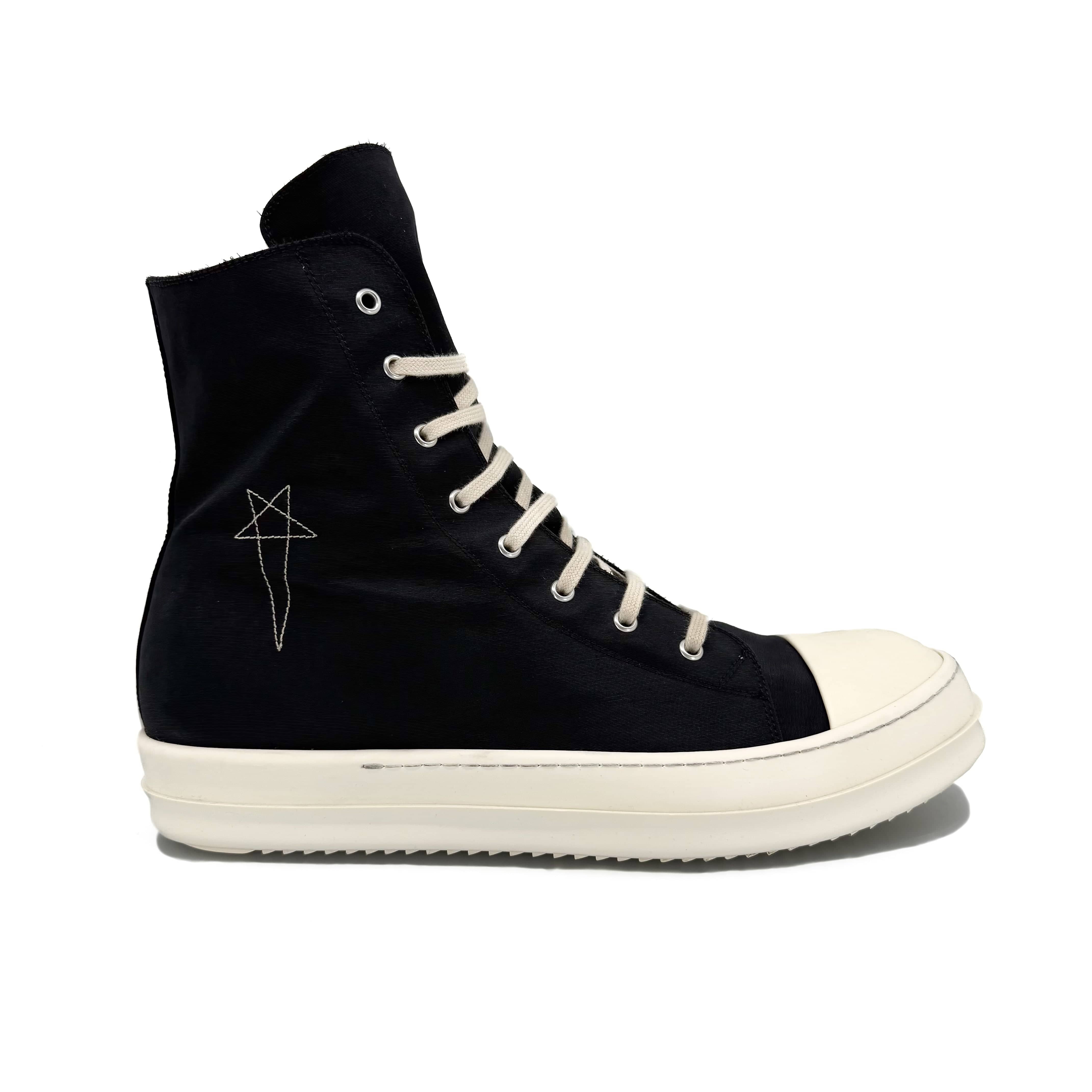 Rick Owens DRKSHDW Hollywood Pentagram Embroidered Ramone Sneaker High Black Pearl Milk