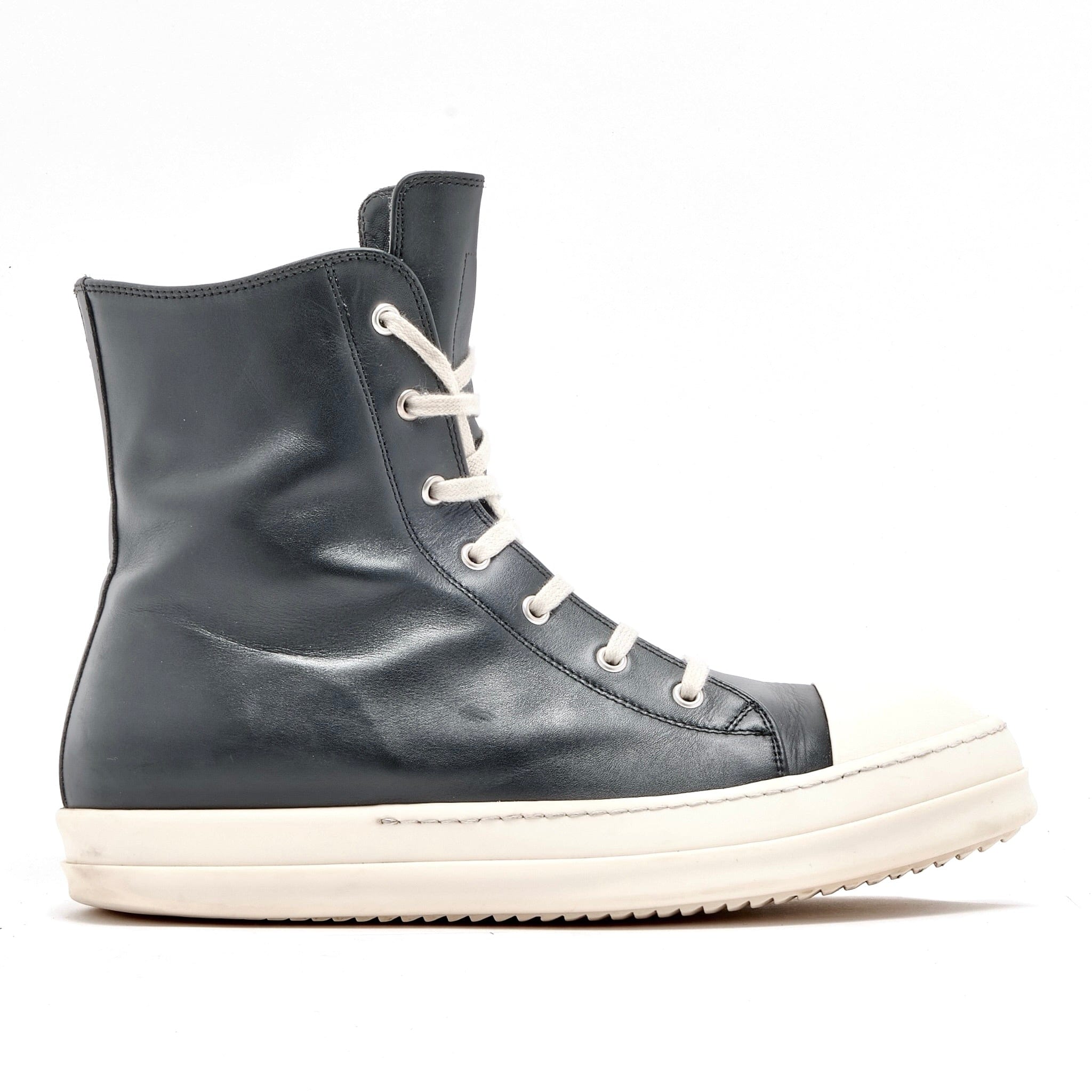 THESE SNEAKS ARE ABOVE-ANKLE HEIGHT AND FEATURE SEVEN EYELETS, LACES, A ZIPPER ON THE INSIDE ANKLE FOR EASY FASTENING, TOE CAPS AND SHARK-TOOTH SOLES.