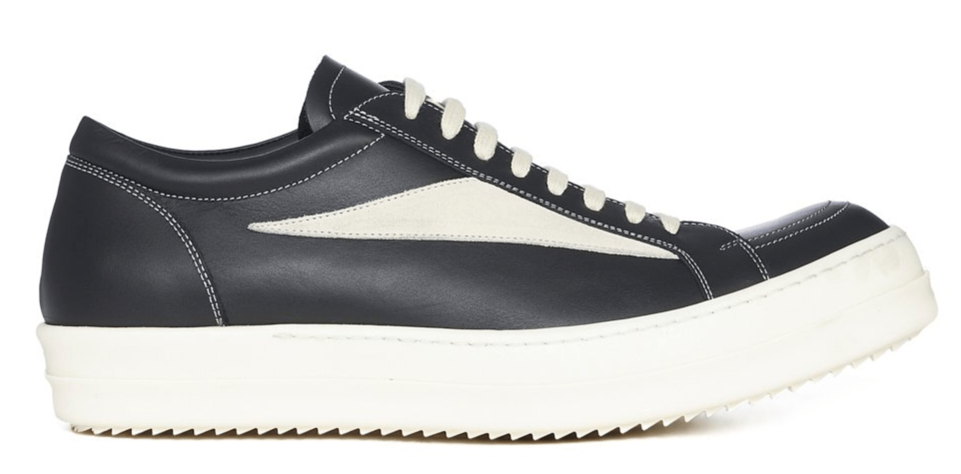 RICK OWENS FW23 LUXOR VINTAGE SNEAKS IN BLACK AND MILK CORTINA GREASE CALF LEATHER AND VELOURS SUEDE