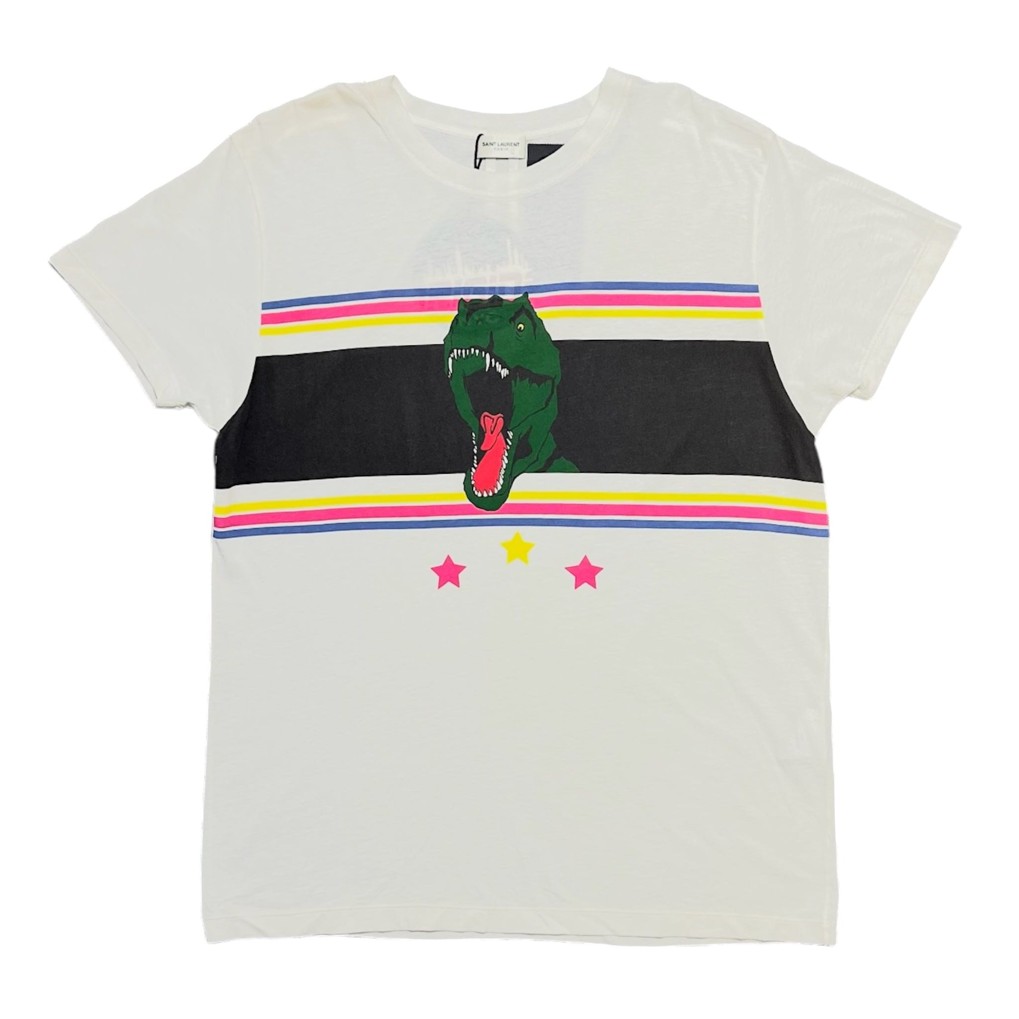 Designer Anthony Vaccarello has brought a graphic, retro-inspired sense of humour to the latest offering of Parisian fashion house Saint Laurent. The dinosaur - a recurring motif in the 2017 pre-collection - sits printed to the chest of this lightweight cotton tee, along with a series of stars and stripes. The tee itself has been softly washed to produce an incredibly soft feel and vintage effect to the print.