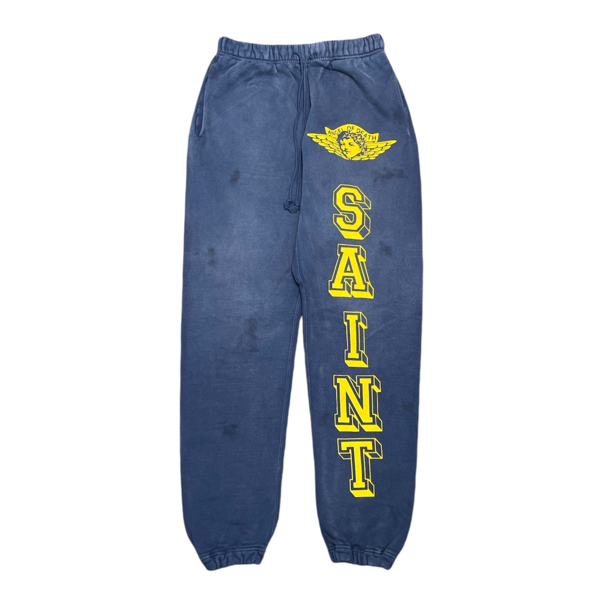 Saint Michael Angel of Death Logo Sweatpants Navy Blue Yellow