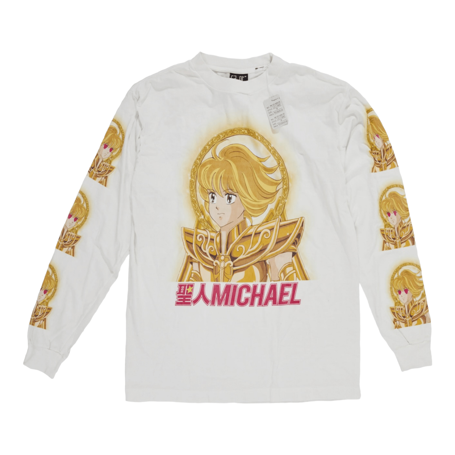 Saint Michael Anime Logo Long Sleeve Tee Shirt White Pink Gold