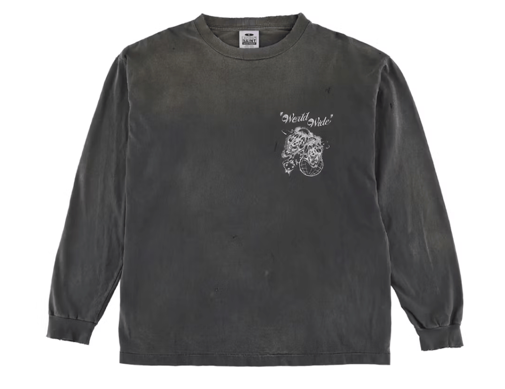 Saint Michael Born Saint Long Sleeve Tee Shirt Washed Black White