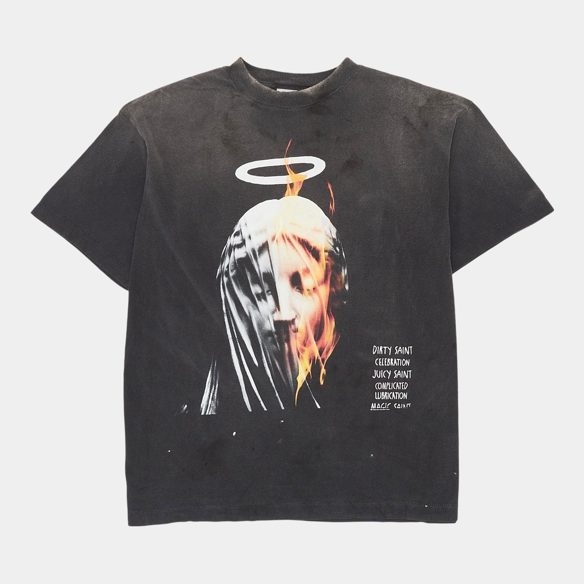 Saint Michael Devil Daddy Logo Short Sleeve Tee Shirt Black White Multi