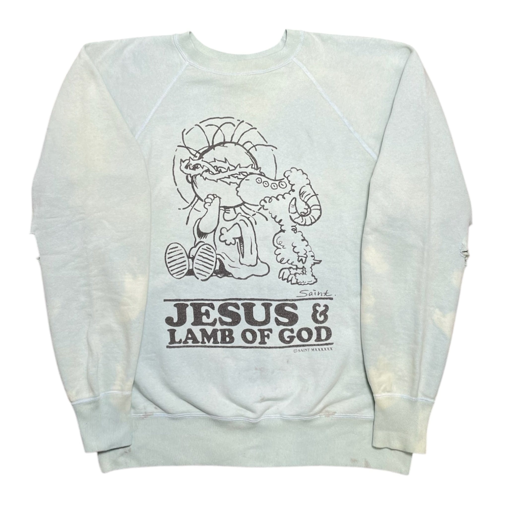 Saint Michael Jesus Lamb Of God Logo Crewneck Sweatshirt Teal Black
