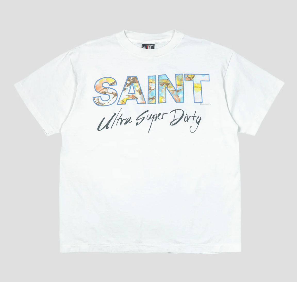 Saint Michael Super Dirty Logo Short Sleeve Tee Shirt White Blue Multi