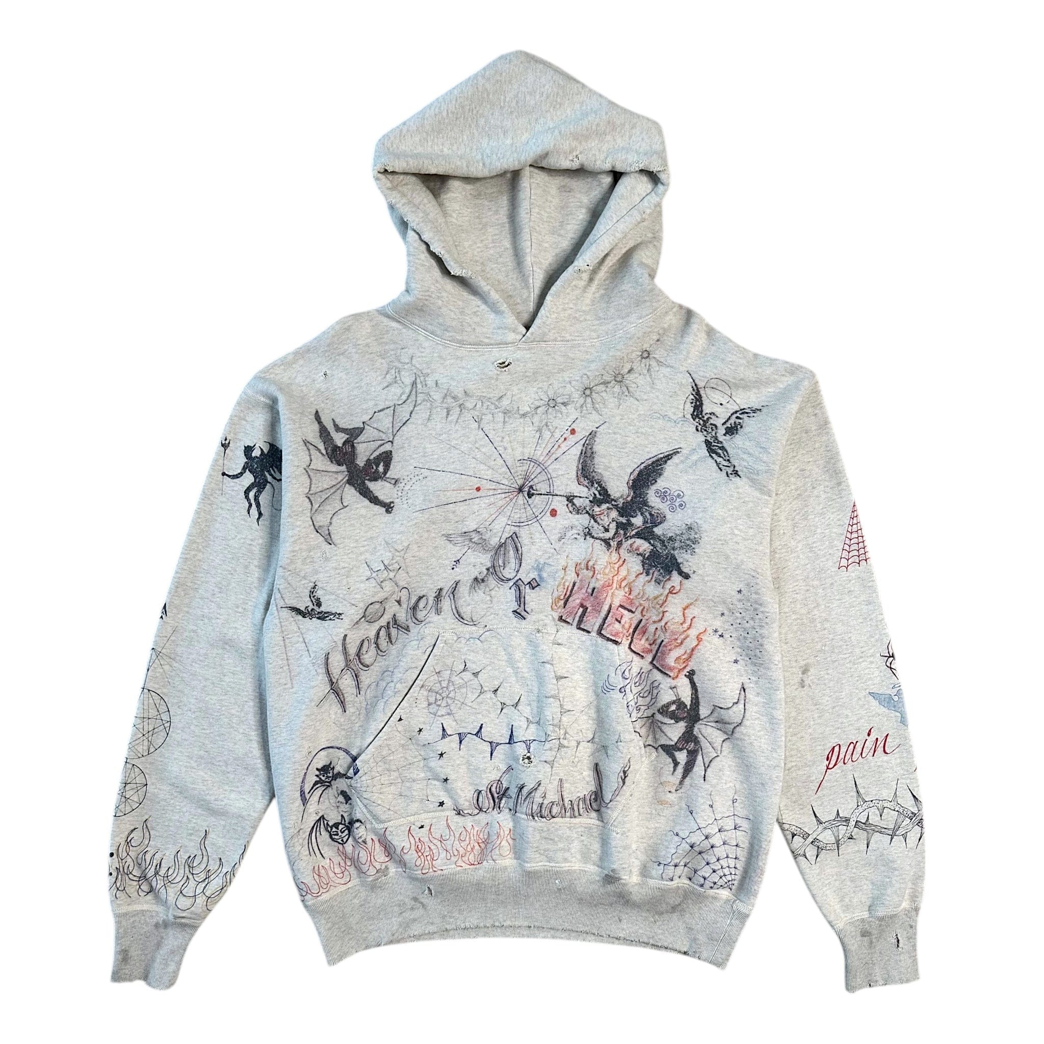 Saint Michael x Dr Woo Graffiti Logo Hooded Sweatshirt Beige Multi