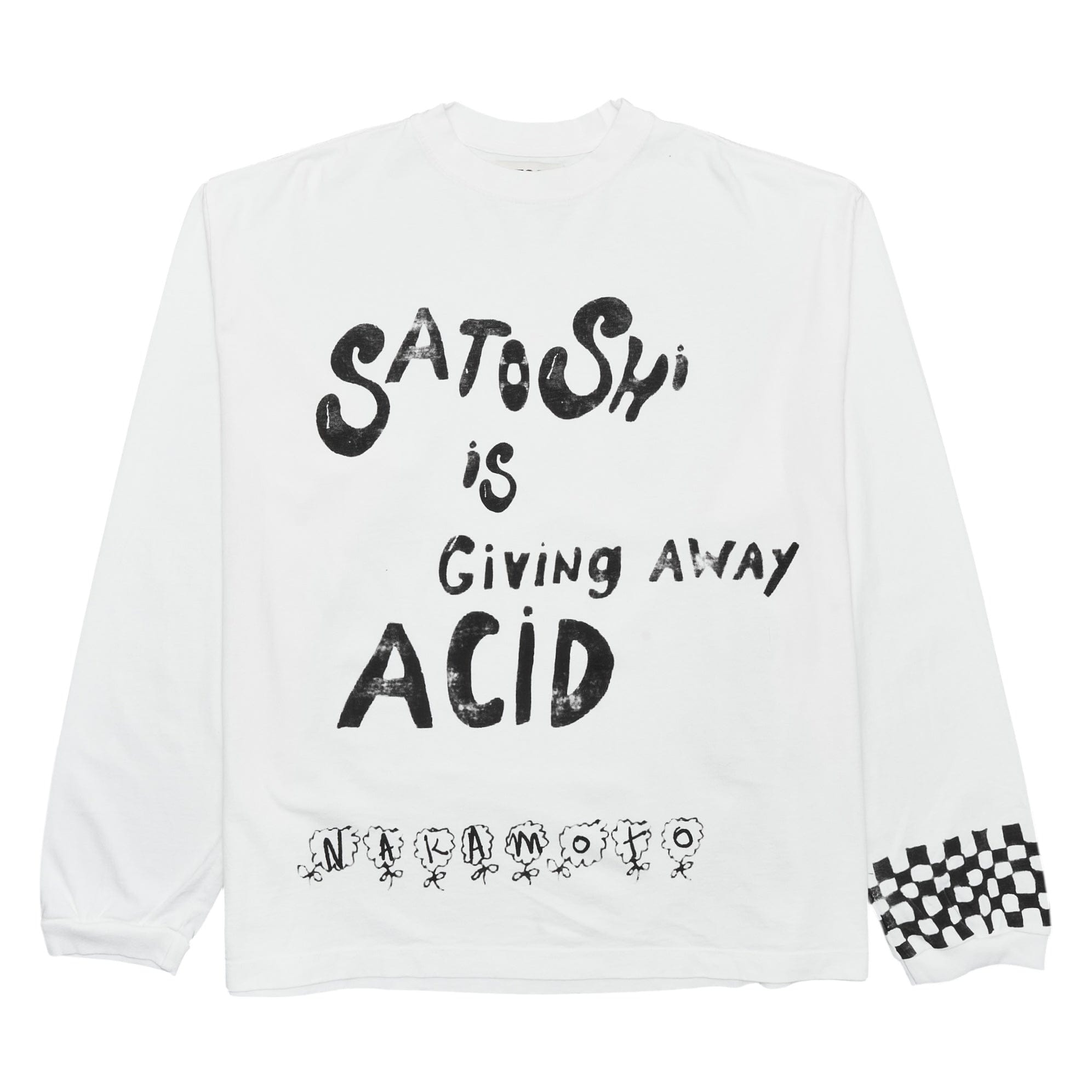 Satoshi Nakamoto Acid Logo Long Sleeve Tee Shirt White Black