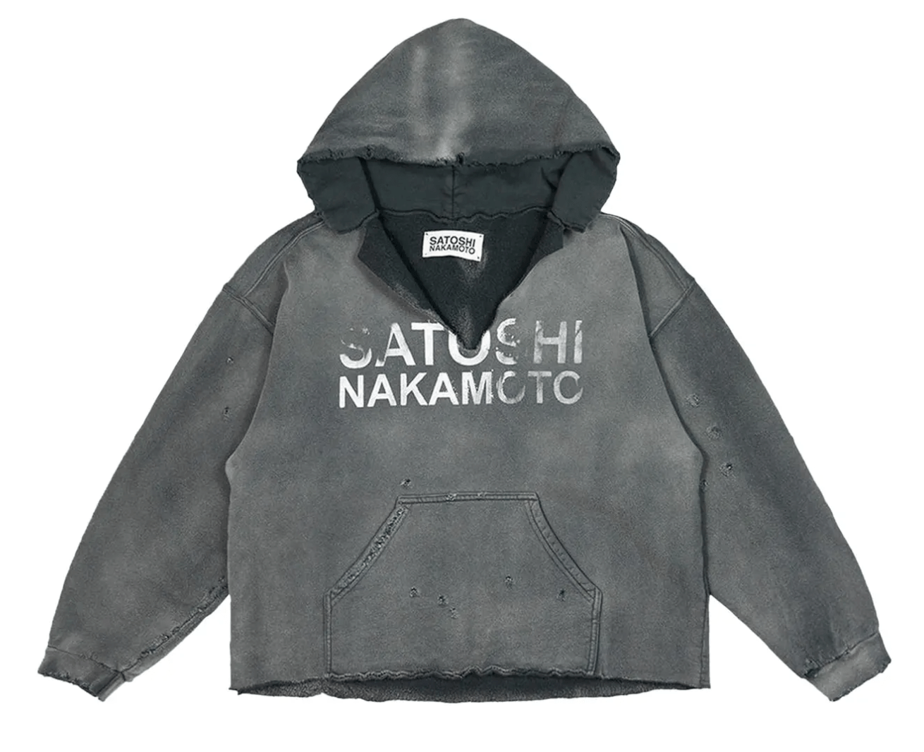 Satoshi Nakamoto Distressed V Cut Hooded Sweatshirt Black