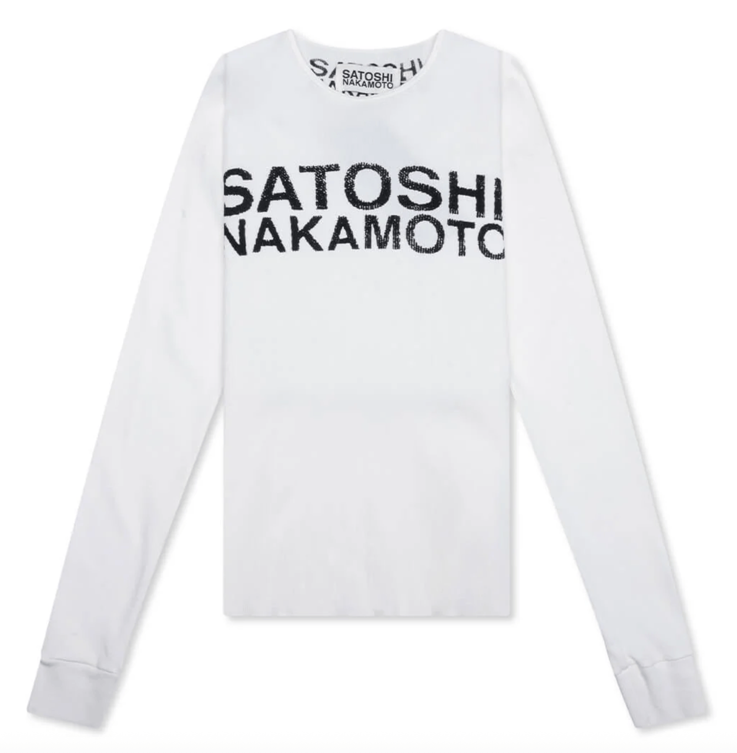 Satoshi Nakamoto Logo Thermal Long Sleeve Shirt White Black
