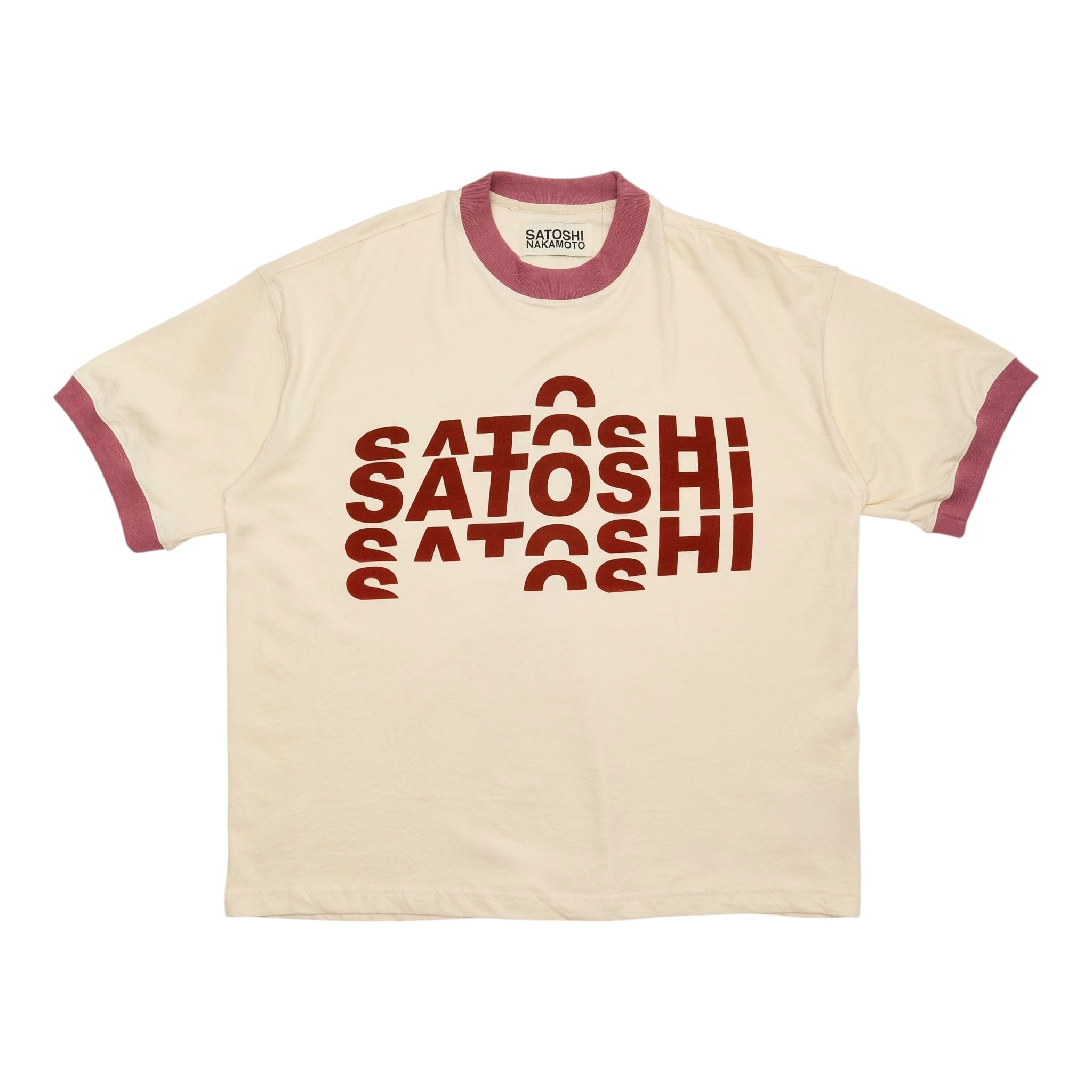 Satoshi Nakamoto Ringer Logo Short Sleeve Tee Shirt Vintage White Red