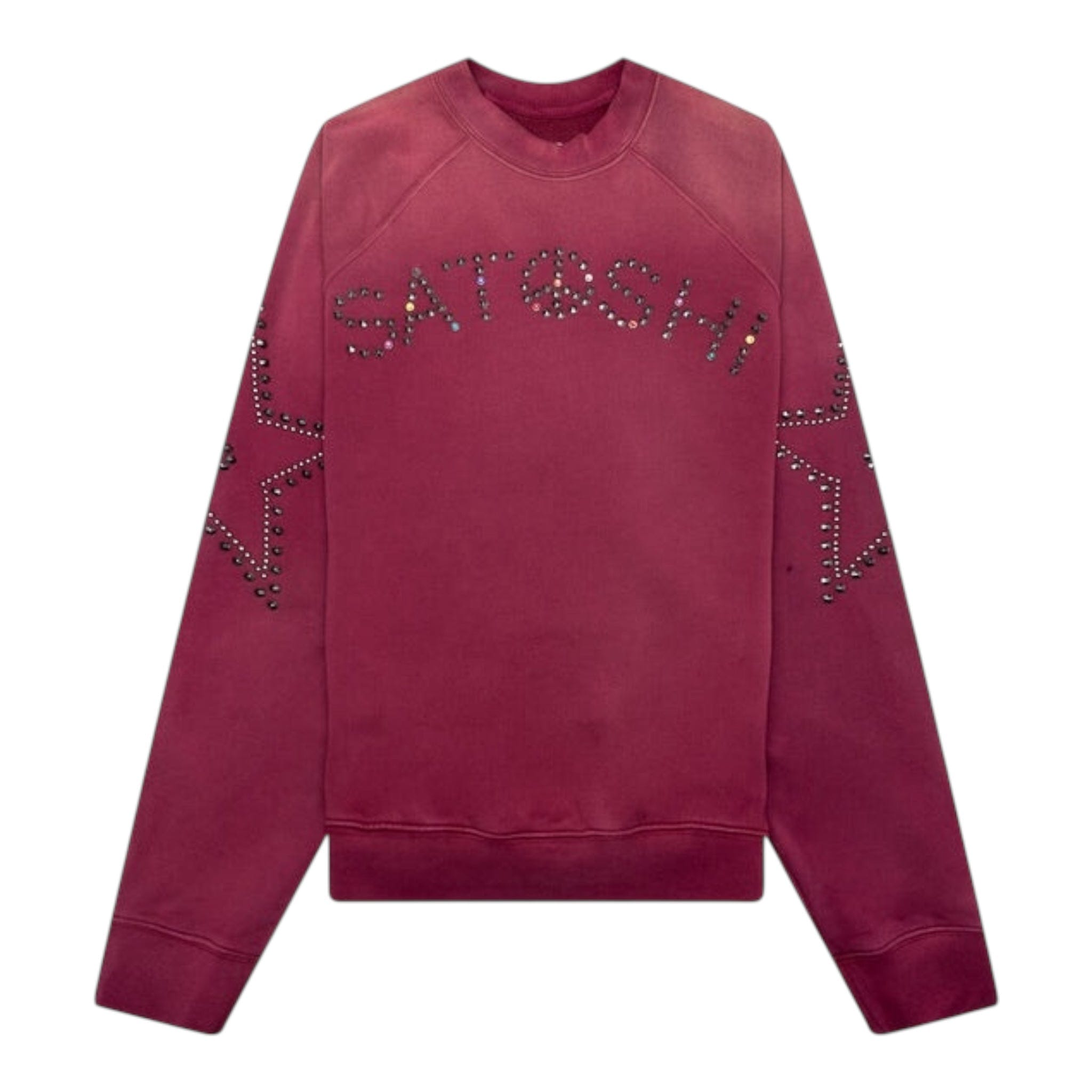 Satoshi Nakamoto Studded Star Logo Crewneck Sweatshirt Burgundy Multi