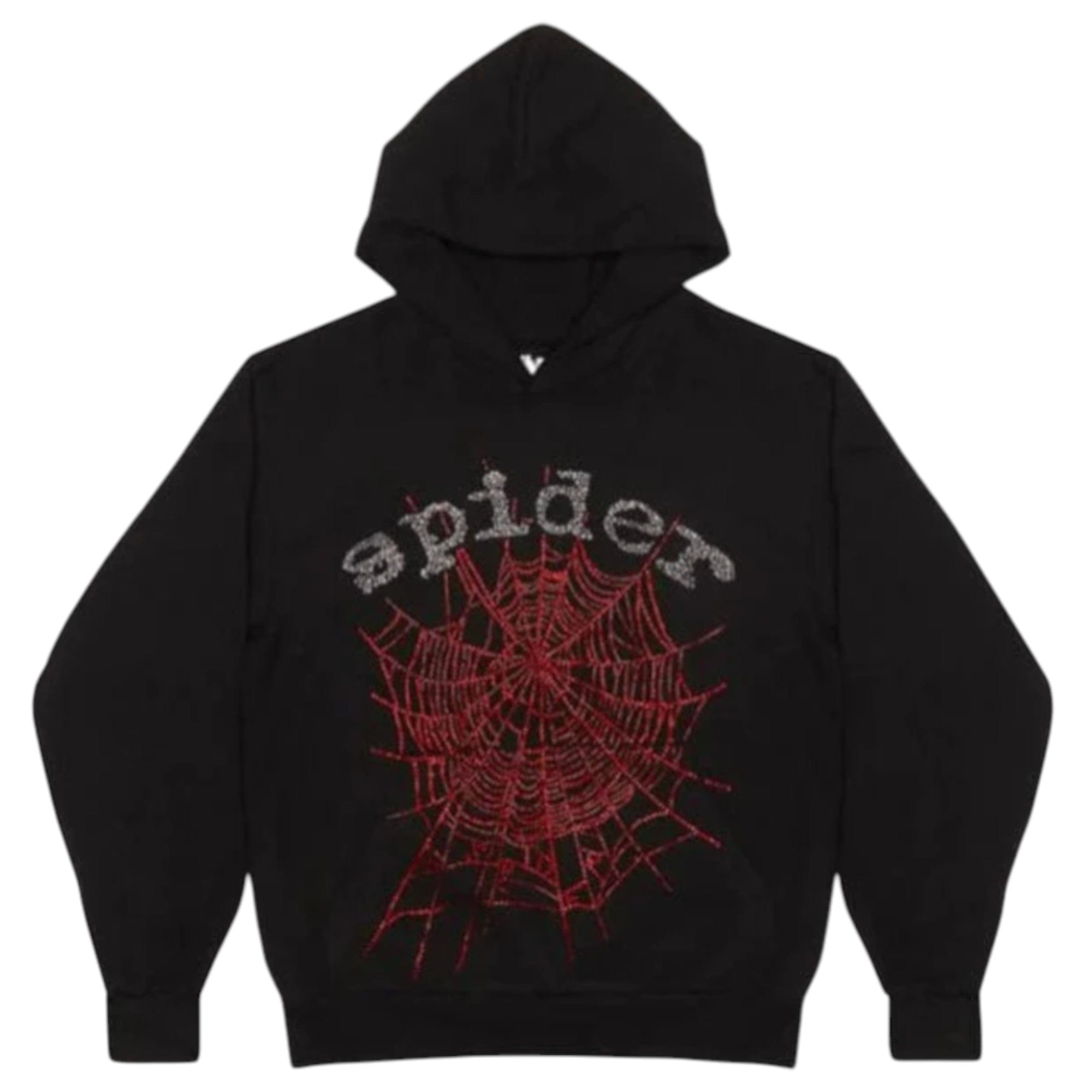 Spider Worldwide OG Rhinestone Logo Hooded Sweatshirt Black Red