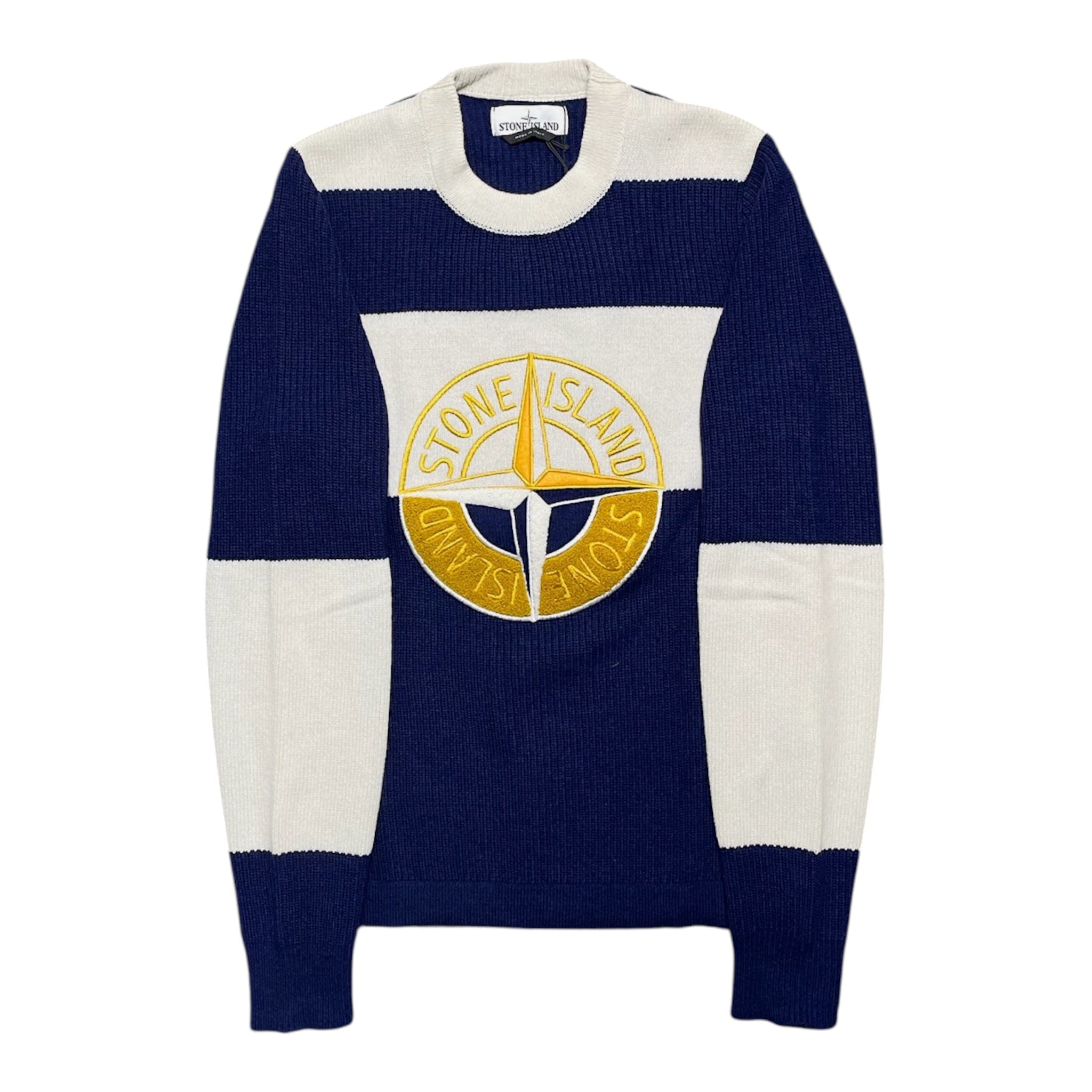 Stone Island Compass Striped Wool Sweater Navy Blue Multi