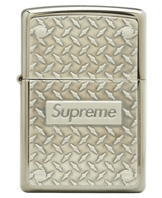 Released during Supreme's SS19 Week 11 drop, Supreme's Diamond Plate Zippo lighter very literally brought the heat. Featuring diamond plate detailing traditionally used for non-slip floors and surfaces and the Supreme Box Logo engraved across the face of the lighter, this Zippo makes for one of Supreme's most detailed Zippo in years. Following last years Red Logo Zippo lighter, the Supreme Diamond Plate Zippo released on Thursday May 9th, 2019 and retailed for $54 USD.