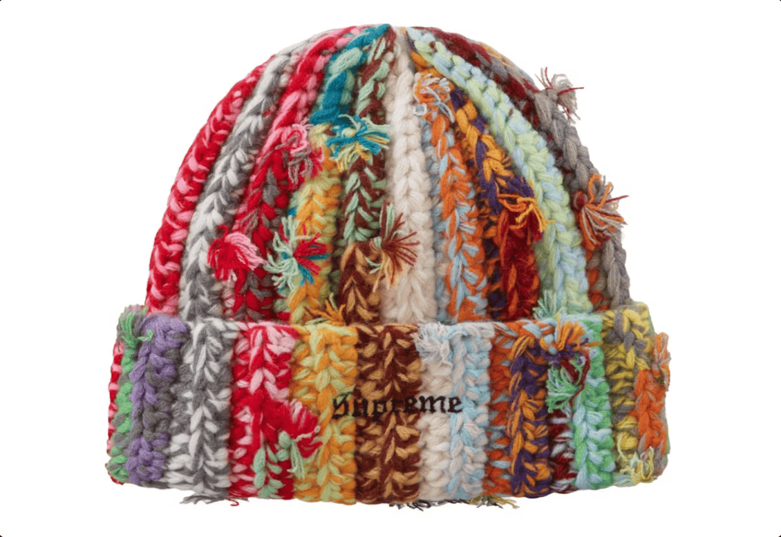 In our opinion, the best feature of the Supreme Hand Tied Beanie Multicolor is its chunky knit, which offers an eye-catching, unisex way to stay warm. The Supreme Hand Tied Beanie Multicolor released on November 16, 2023, and retailed at $54.