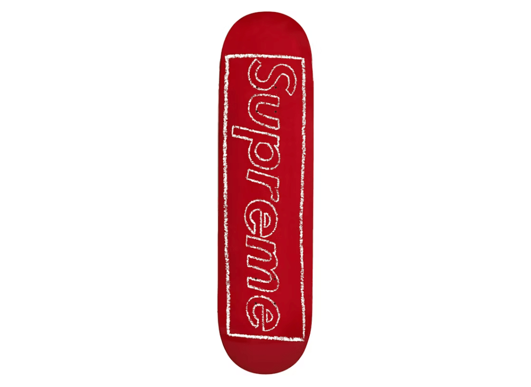 After a decade since the duo's last collaboration in 2011, KAWS and Supreme are back for a new set of collectible skate decks. The Supreme KAWS Chalk Logo Skateboard Deck Red showcases the classic KAWS box logo as seen in his prior collaboration with Supreme. This time however, the logo spans the entire width of the deck. This KAWS box logo deck retailed for $52 and released on February 18th, 2021, selling out quickly as a key piece in the first drop of Supreme's Spring/Summer 2021 season. Cop now to secure this piece of art history.