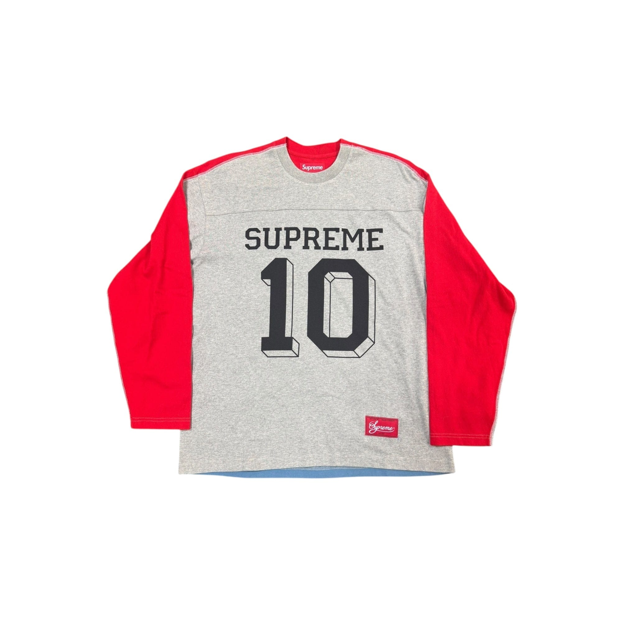 Supreme Split Football Long Sleeve Tee Shirt Grey Red Blue