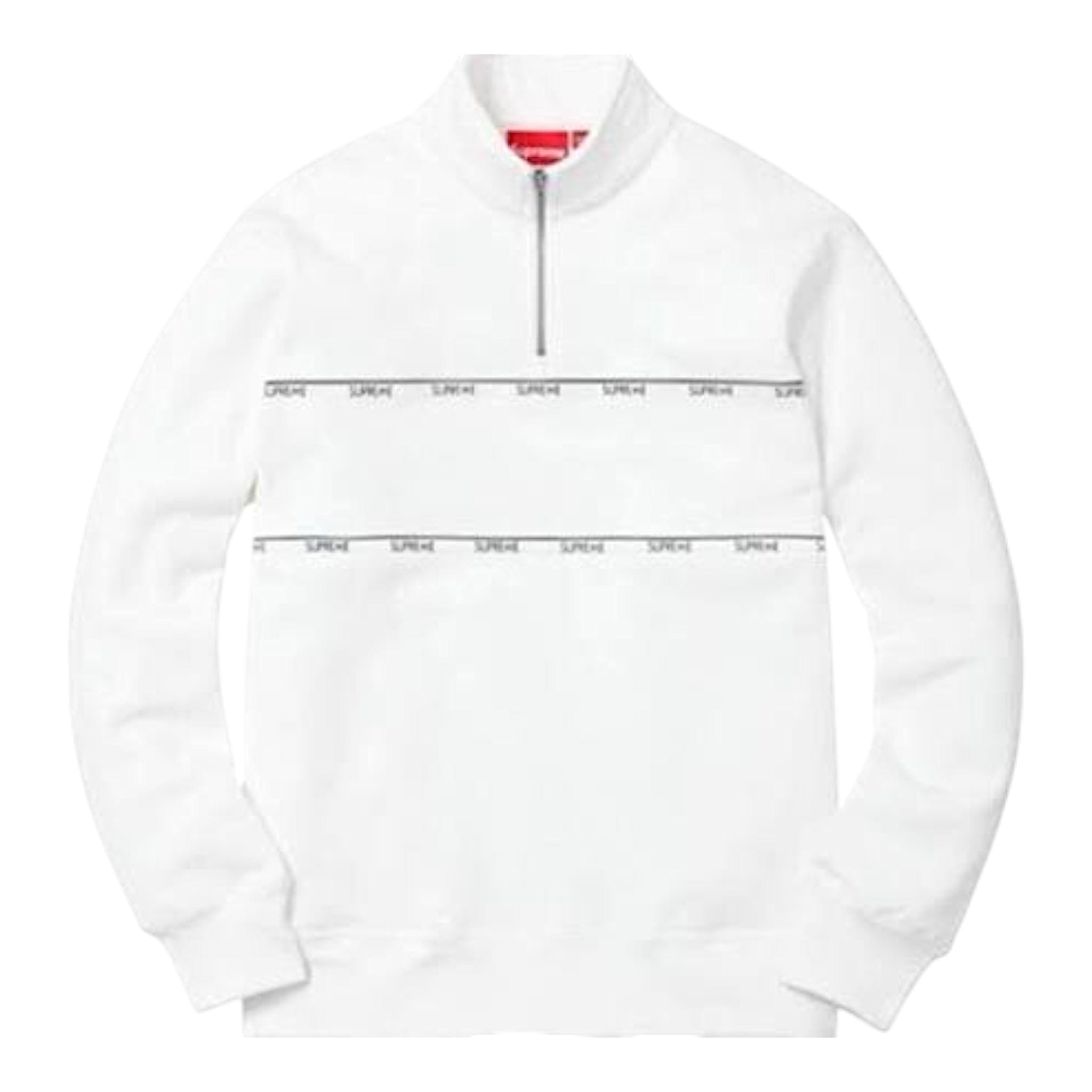 Supreme Tape Logo Half Zip Sweatshirt White Multi