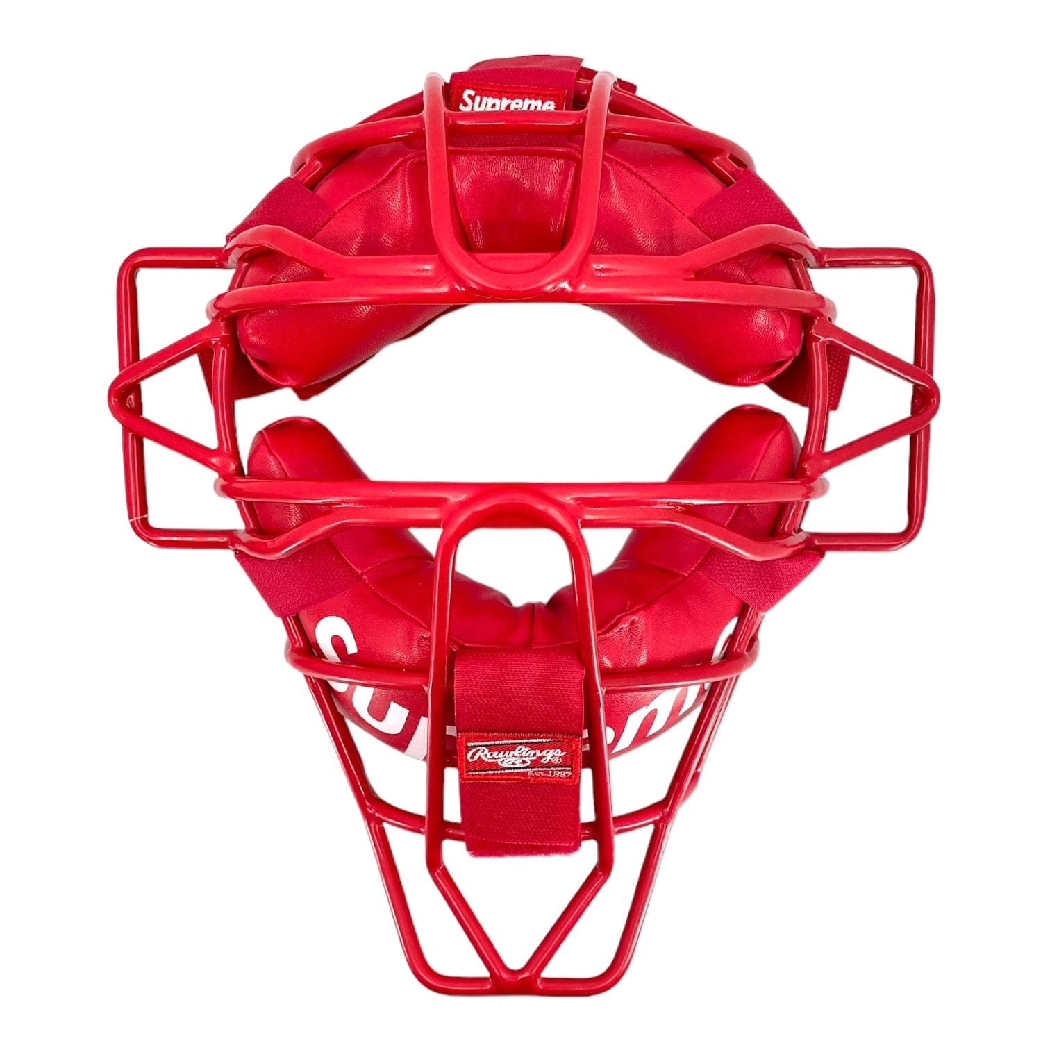 The Supreme Rawlings Catchers Mask Red is an adjustable protective helmet for the head that was made available courtesy of the Supreme X Rawlings collaboration.