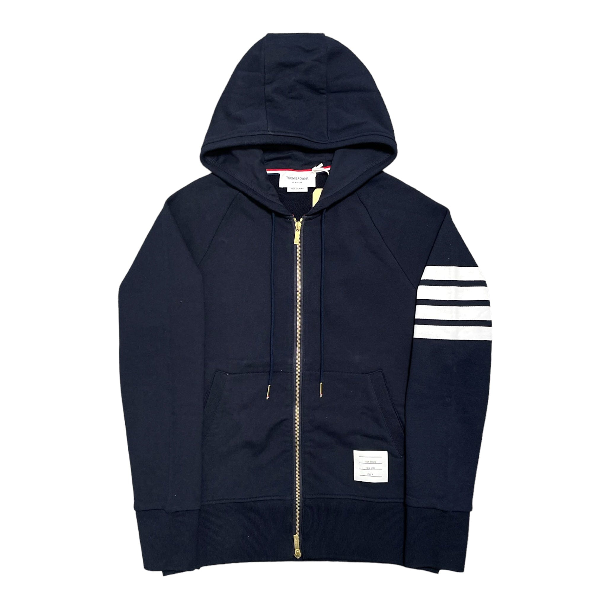 Thom Browne Engineered 4-Bar Zip Up Hooded Sweatshirt Navy Blue White