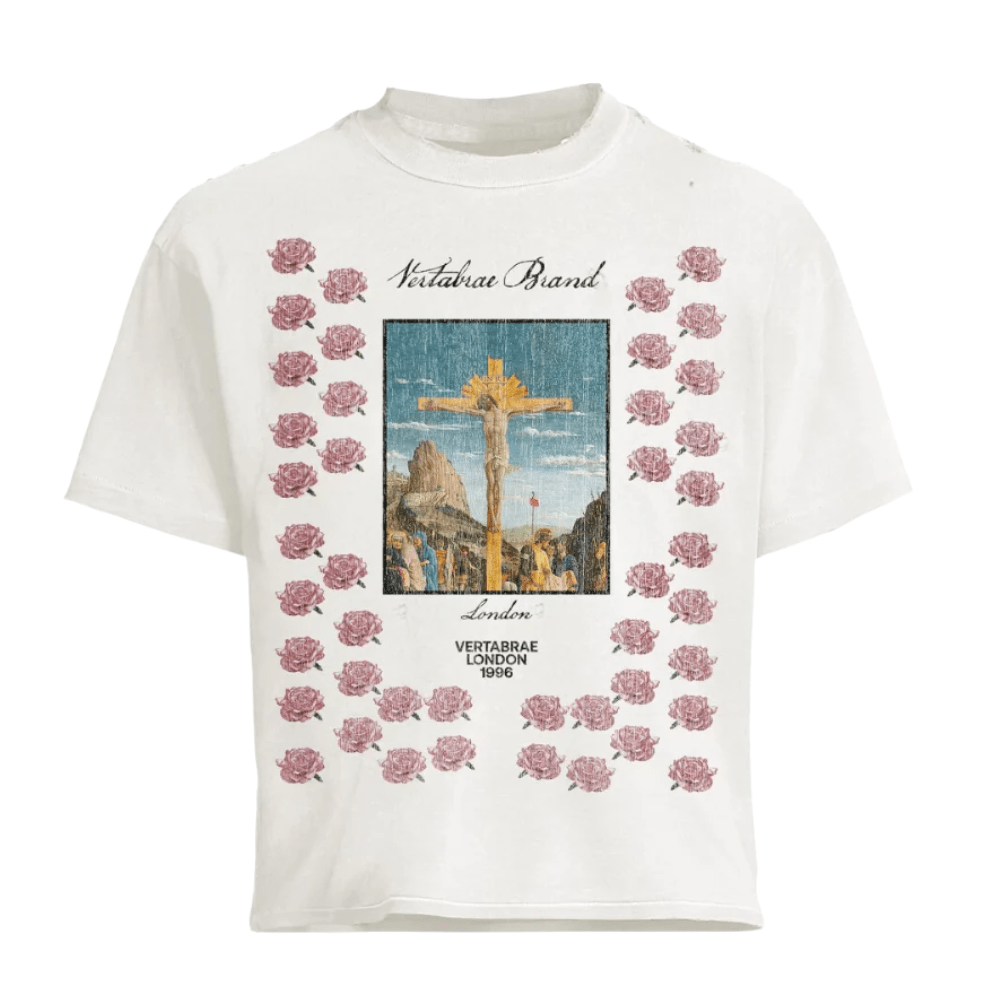 Vertabrae Roses Logo Short Sleeve Tee Shirt Cream Multi
